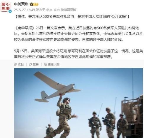 此前美方公开承认“500美军进驻台湾”!目的是为了试探中国大陆的红线,面对这样的