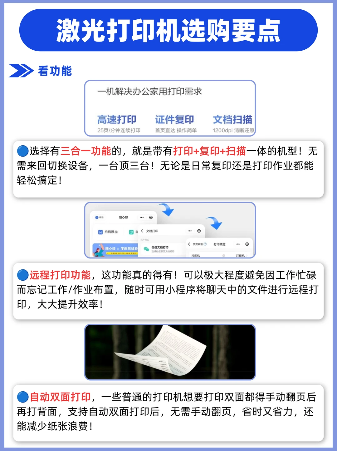 从目前情况来看,家用打印机渐渐成了每个家庭的必备设备,无论是工作文档还是学习试卷,都离不开打印机的身影。最近刚好要买一台激光打印机,为此特地做了些攻略,有几个关键要点得注意,分享给大家避免踩坑,感兴趣的宝子可以来看看~