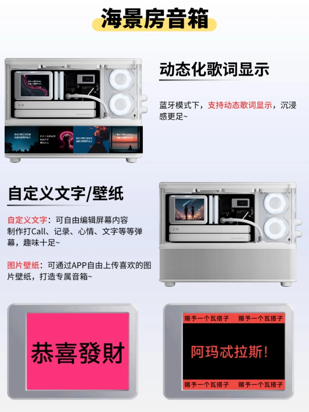 2⃣动态化歌词显示:蓝牙模式下,支持动态歌词显示,歌词跟着节奏轻轻跳,沉浸感更足~