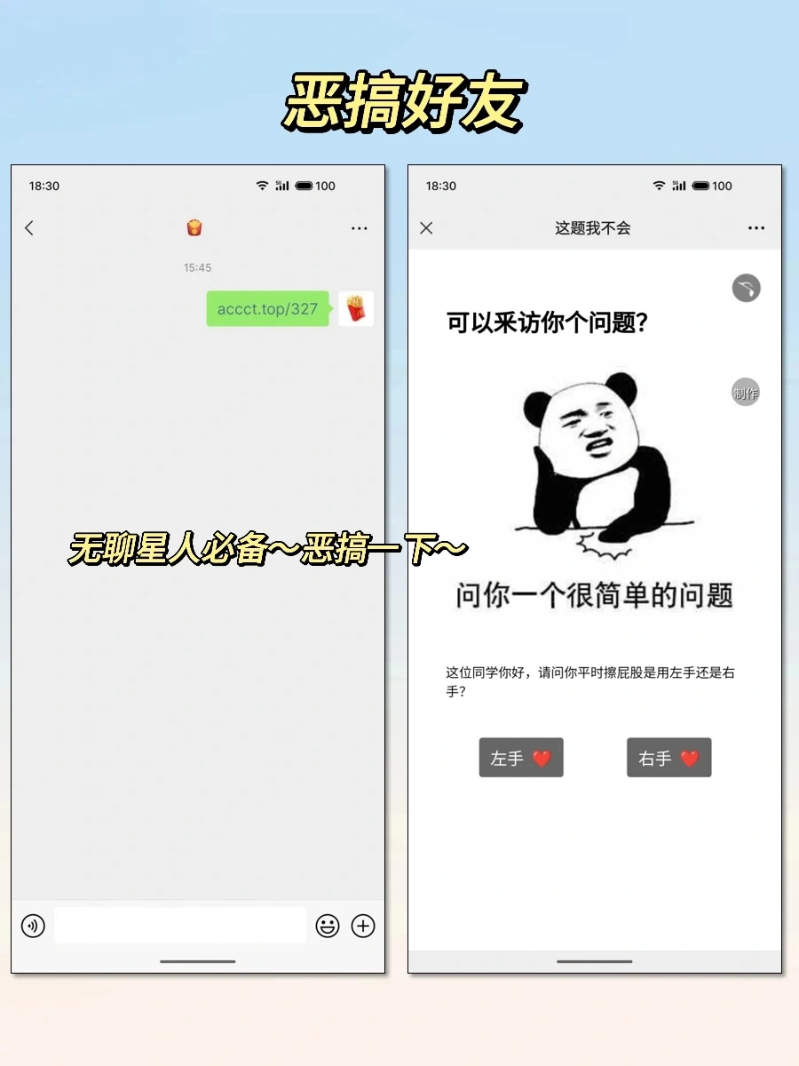 宝子们,v信还能这样玩啊,这也太有趣了吧[偷笑R] 第二弹来啦! - 发送代码到聊天框就可使用[哇R] - 1⃣️音乐喵 《toolwa.com/bongocat》 2⃣️全景故宫 《pano.dpm.org.cn》 3⃣️游戏库 《poki.cn》 4⃣️召唤神龙 《accct.top/312》 5⃣️恶搞好友 《accct.top/327》 6⃣️友情考验 《accct.top/329》 - [偷笑R]有手就会,快冲冲冲!