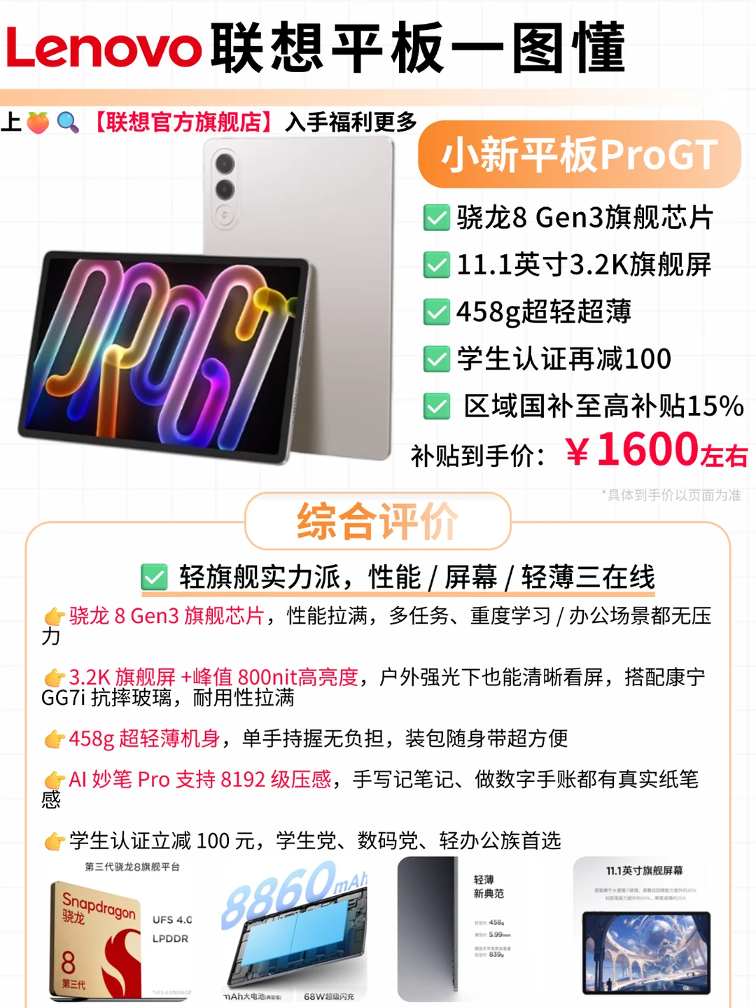 🔹 小新平板 Pro GT : 全能轻旗舰款