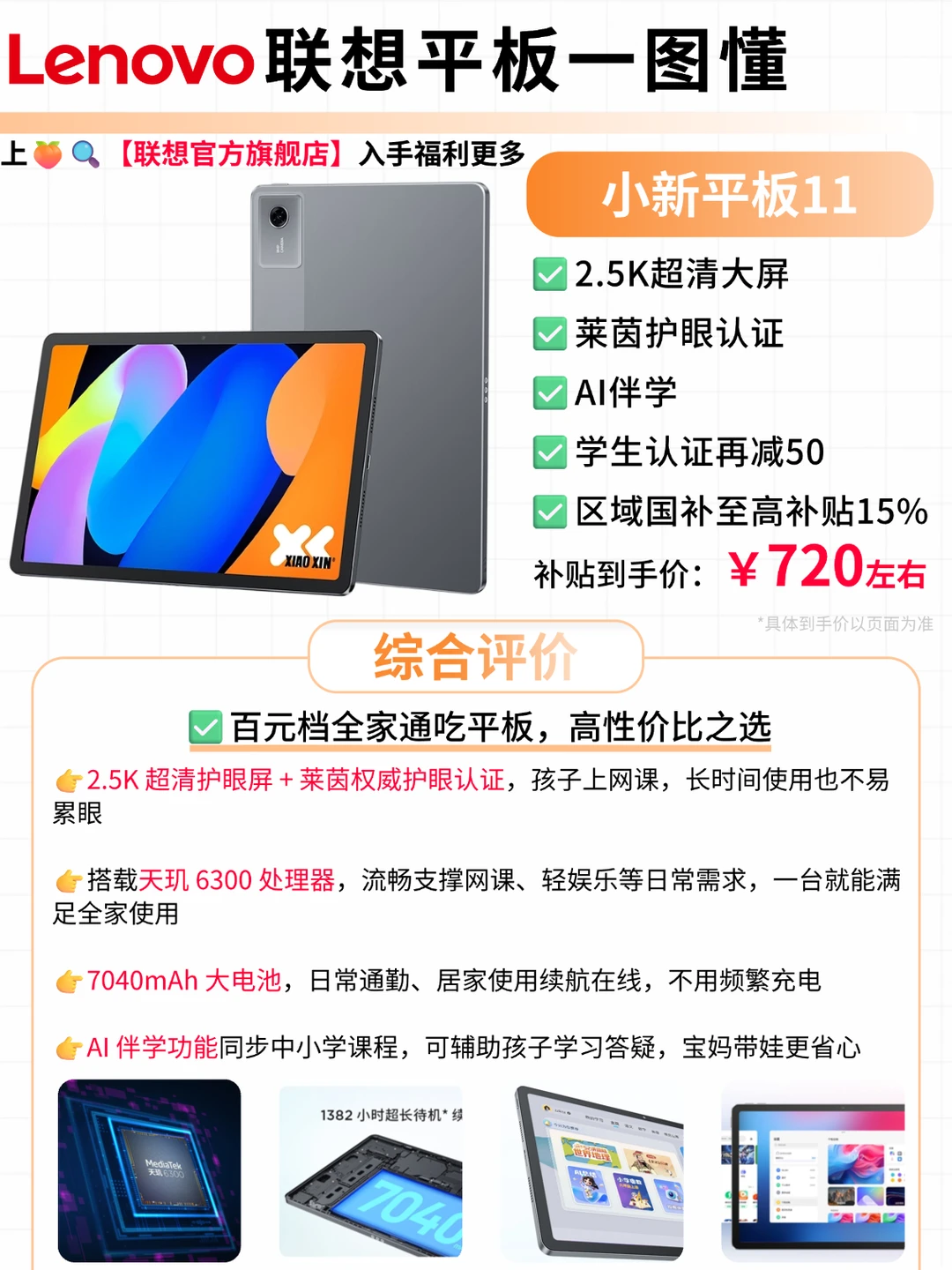✨天玑6300处理器,2.5K超清11英寸大屏,刷剧看网课完全无负担,护眼做到实打实的认真。