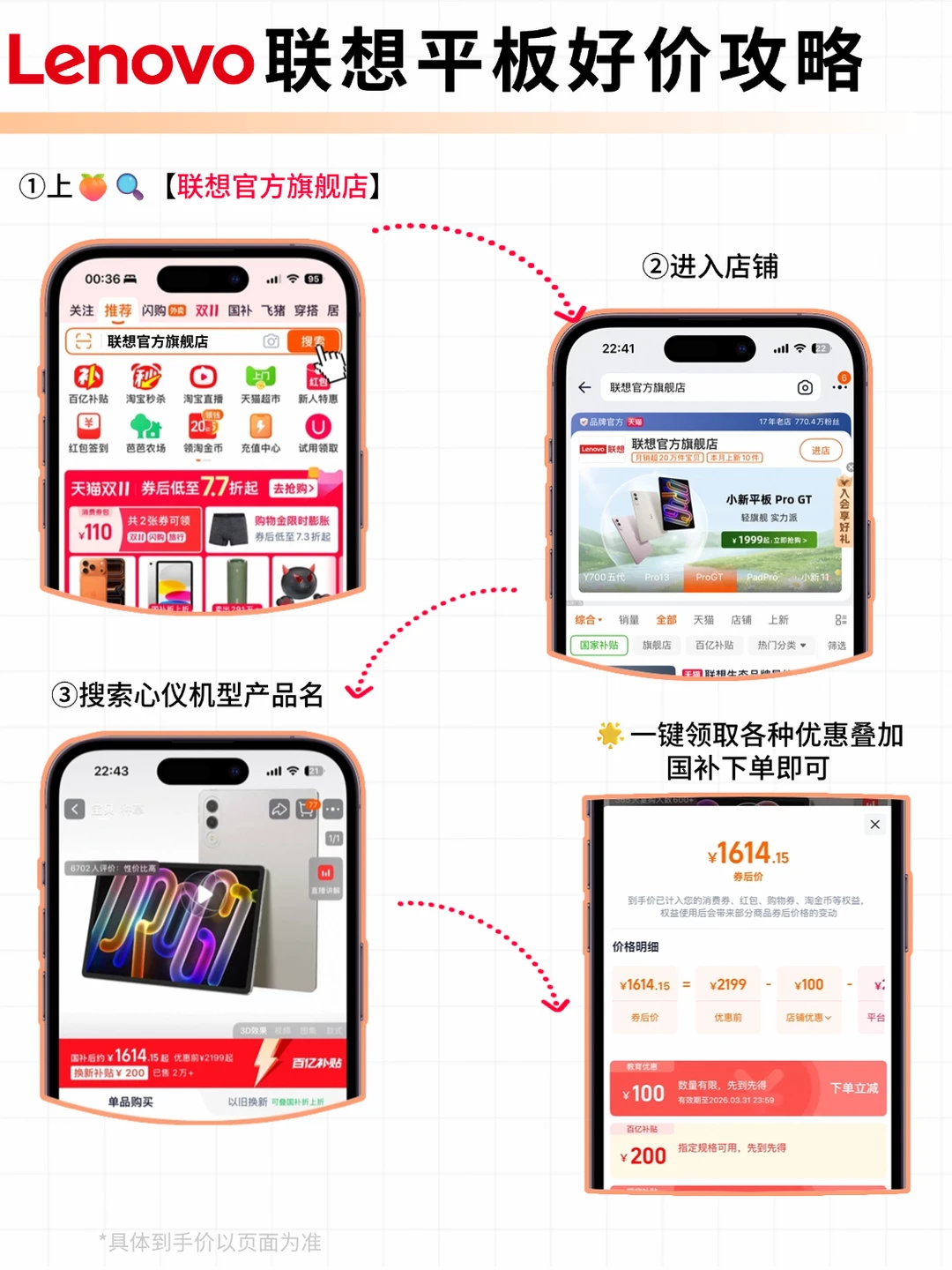 上🐎☁家搜【联想官方旗舰店】,官旗购买福利更多、正品有保障,以上四款机型均可享区域国补至高补贴15%,学生党还能叠加认证立减补贴,想买联想平板的宝子这波真的可以冲啦~早买早享受~