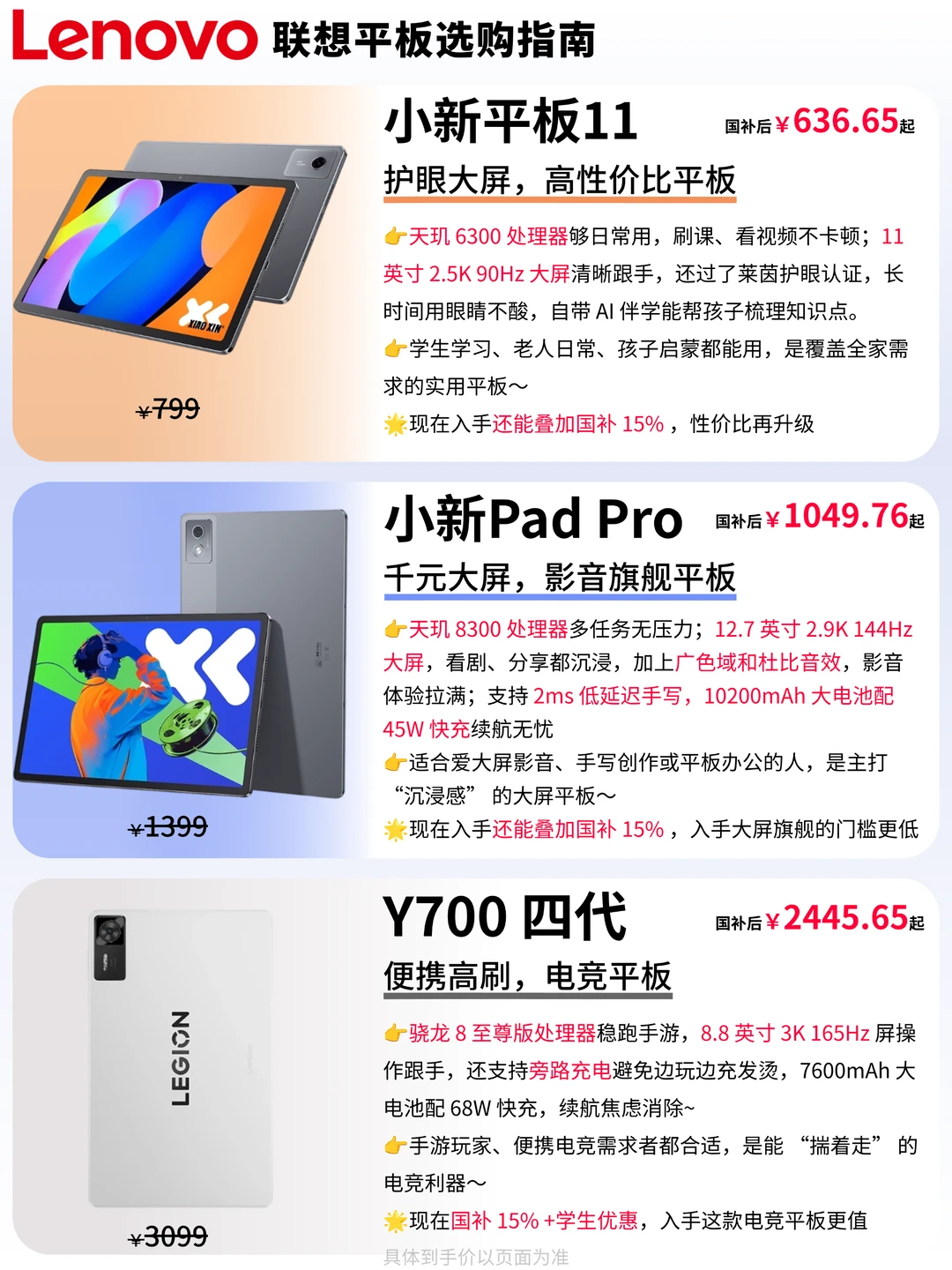 双十一想入平板的宝子看过来!最近不少人私信问我联想的这几款平板该怎么选?怕选不对浪费预算又踩雷,今天专门把这四款机型按定位和使用场景理得明明白白,帮你轻松挑到适配自己的那一款~