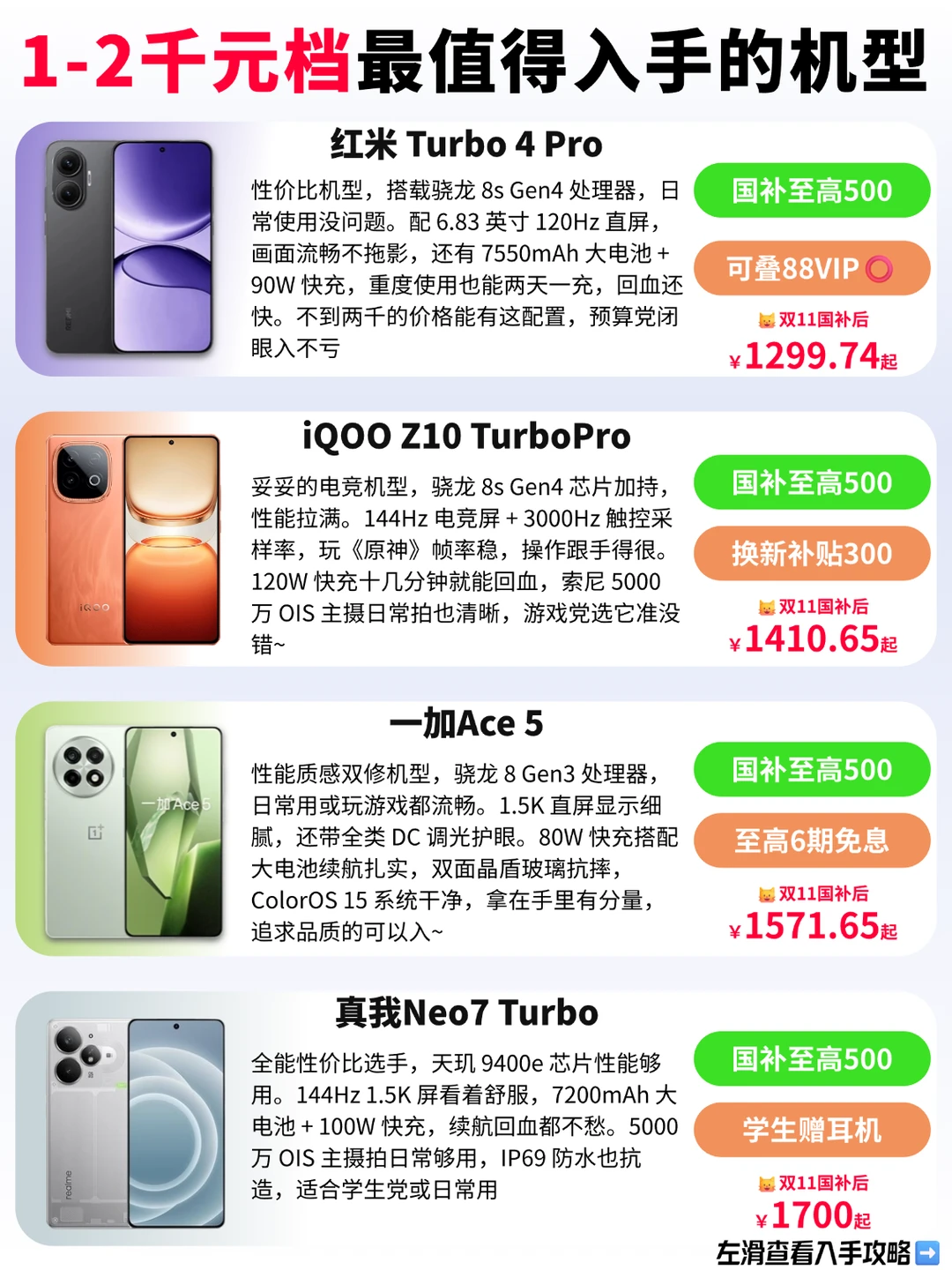 预算1-2 千,想在双 11 想捡漏?下面四款机型性能拉满还能靠🐱国补省几百,今天给大家盘得明白!