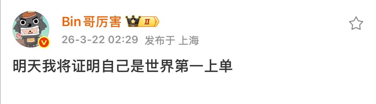Bin赛后发文:明天我将证明自己是世界第一上单
