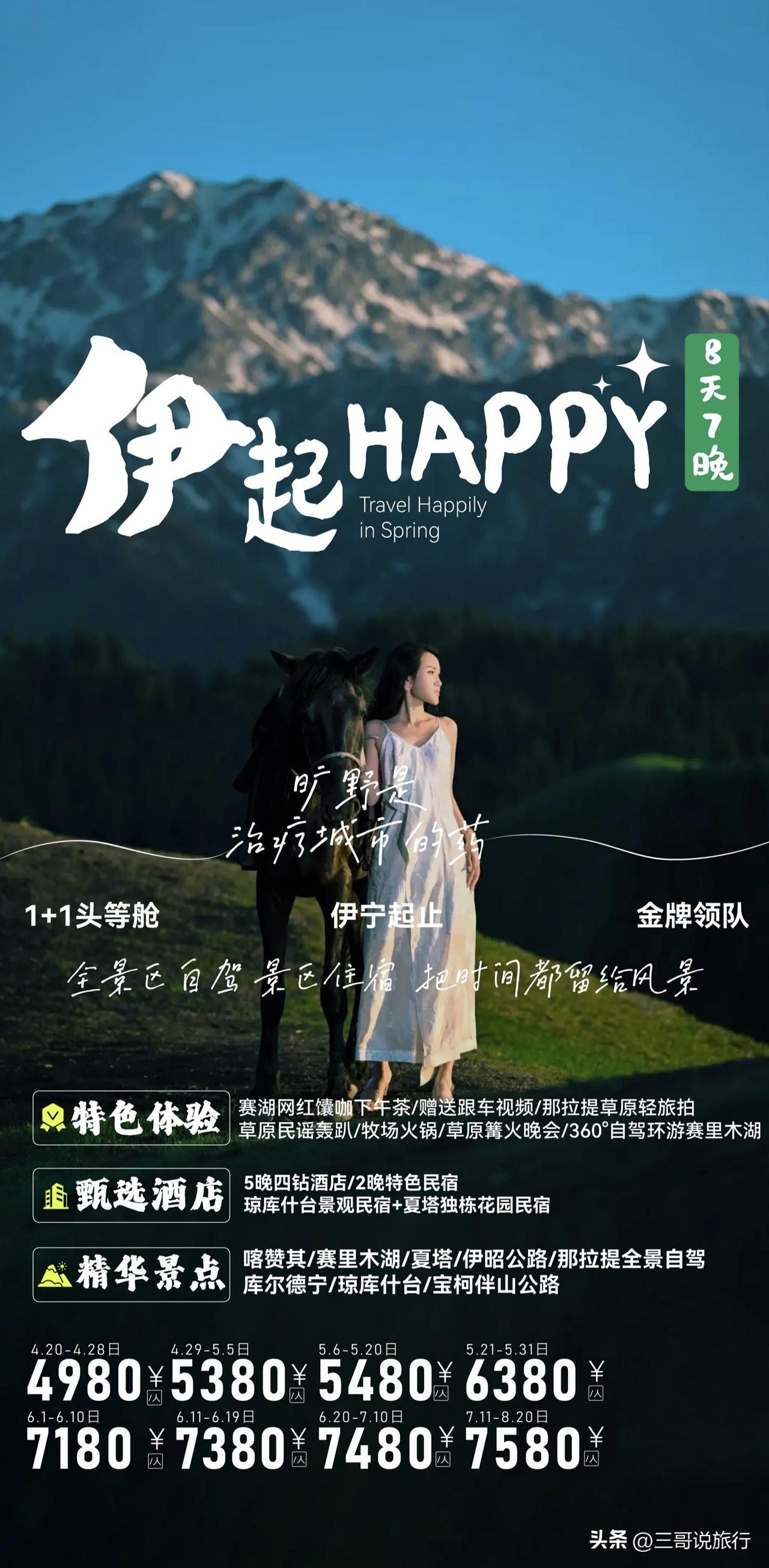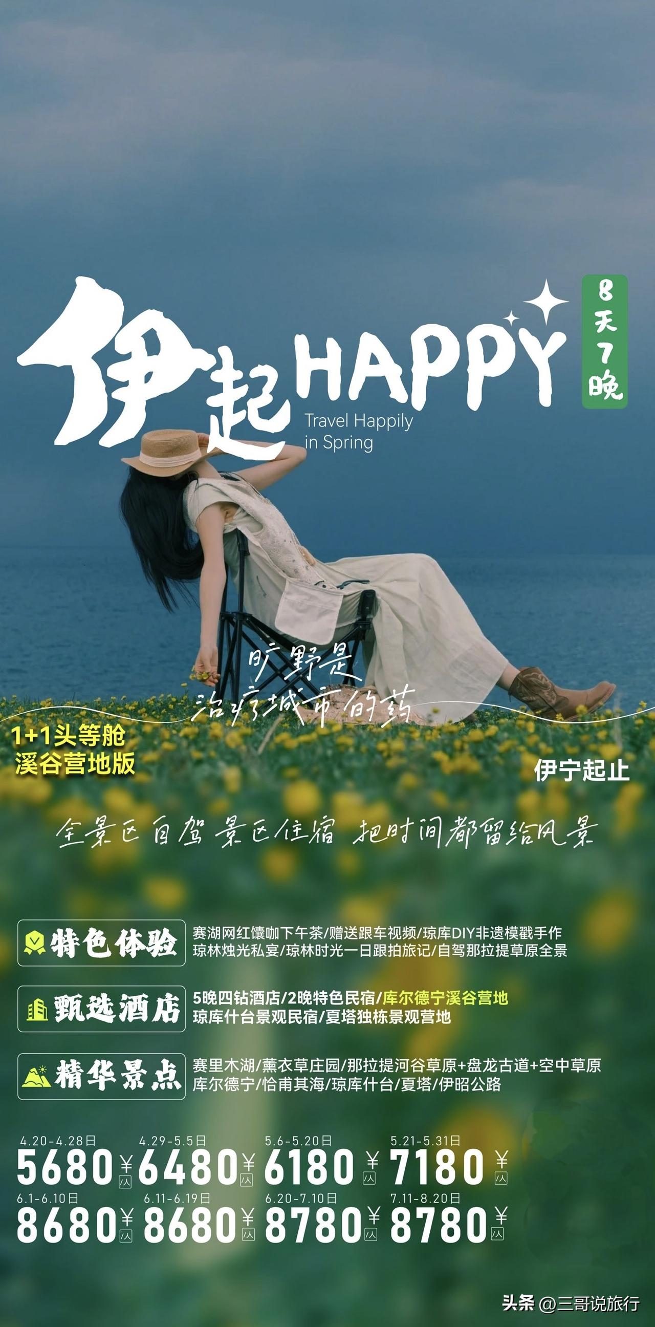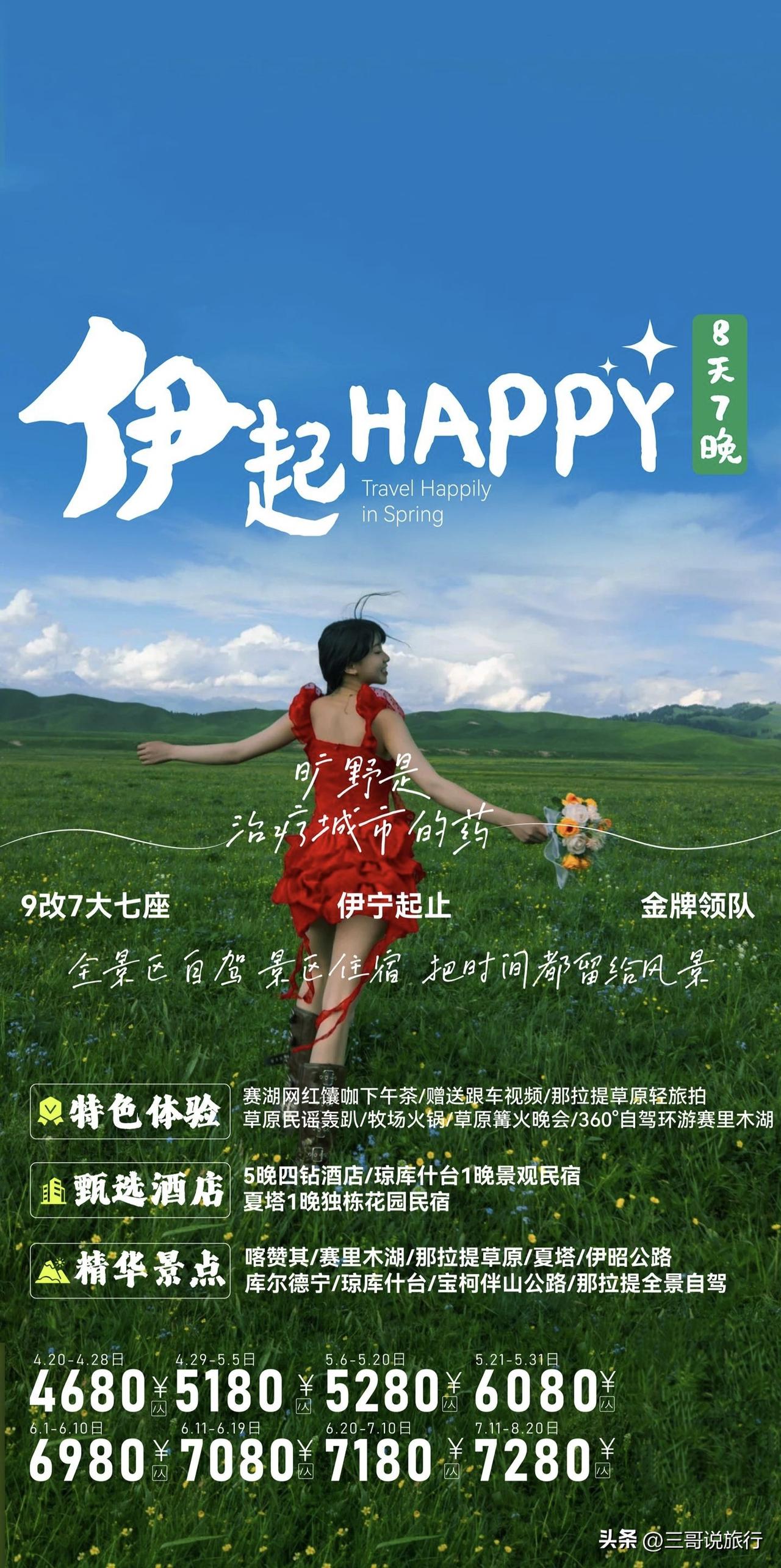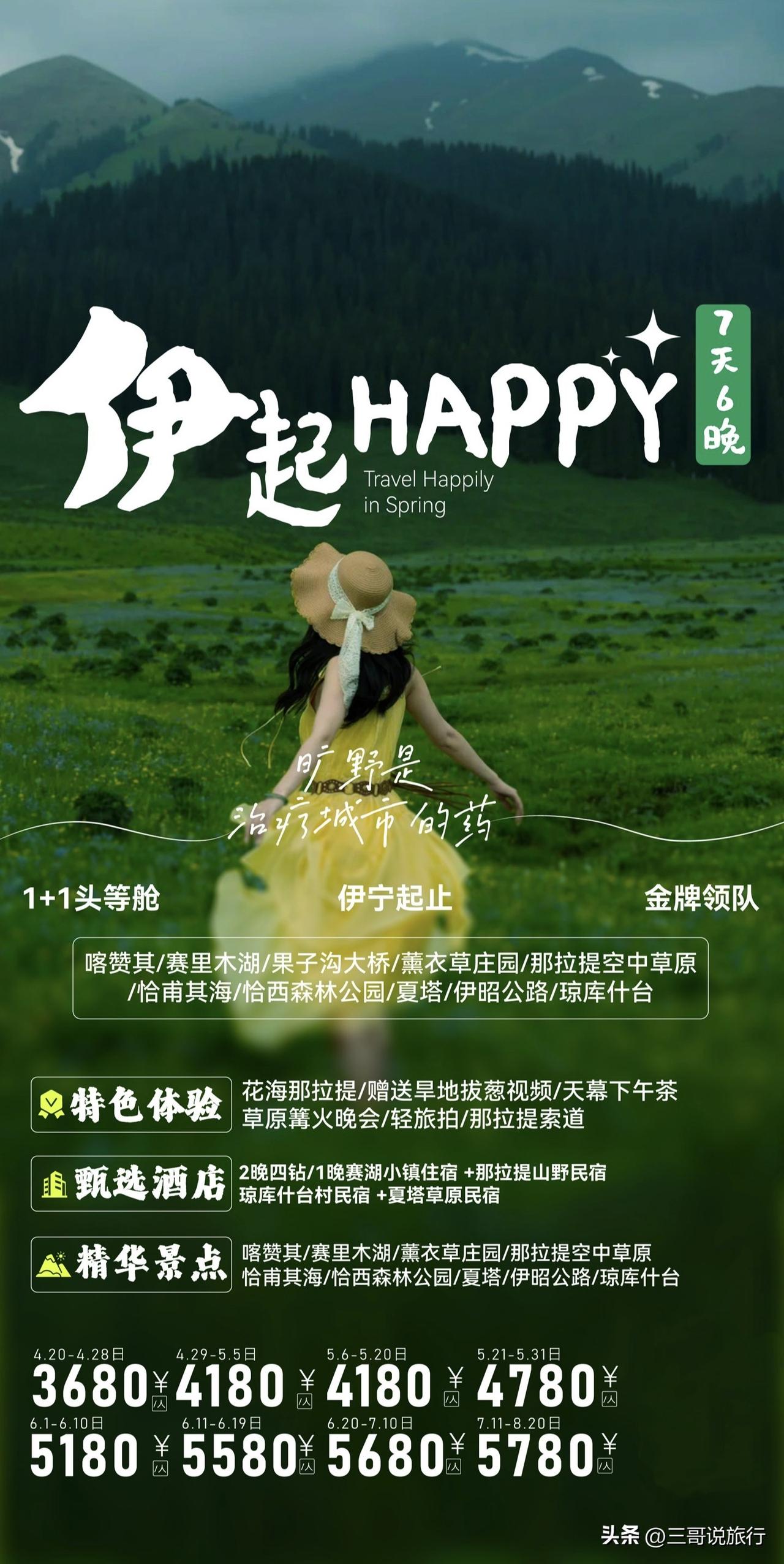 州游记|赴山海·伊宁起止纯玩季 不绕路、不折腾,只做伊宁起止的纯粹新疆之旅,把更多时间留给风景,把旅途还给热爱。 夏季爆款「伊起HAPPY」6/7/8日全线上线,专注地州起止,拒绝长途折返,全程轻松舒适,只为给你全疆最省心的伊宁起止旅行体验。 我们打造多项独家体验:那拉提私家牧场邂逅民谣轰趴,牧场火锅搭配轻旅拍,在赛里木湖邂逅浪漫馕咖;独家入住琼库什台私家牧场景观民宿,沉浸式感受山野诗意。森林厨房定制晚餐、DIY手作、全程跟拍旅记,更有旱地拔葱、民俗体验、天幕下午茶等丰富玩法,每一站都藏着惊喜。 不用赶路,只赴山海,用最舒服的方式,遇见伊犁最动人的风光。来伊犁,从伊宁出发,一场不将就的纯粹旅行,等你出发!