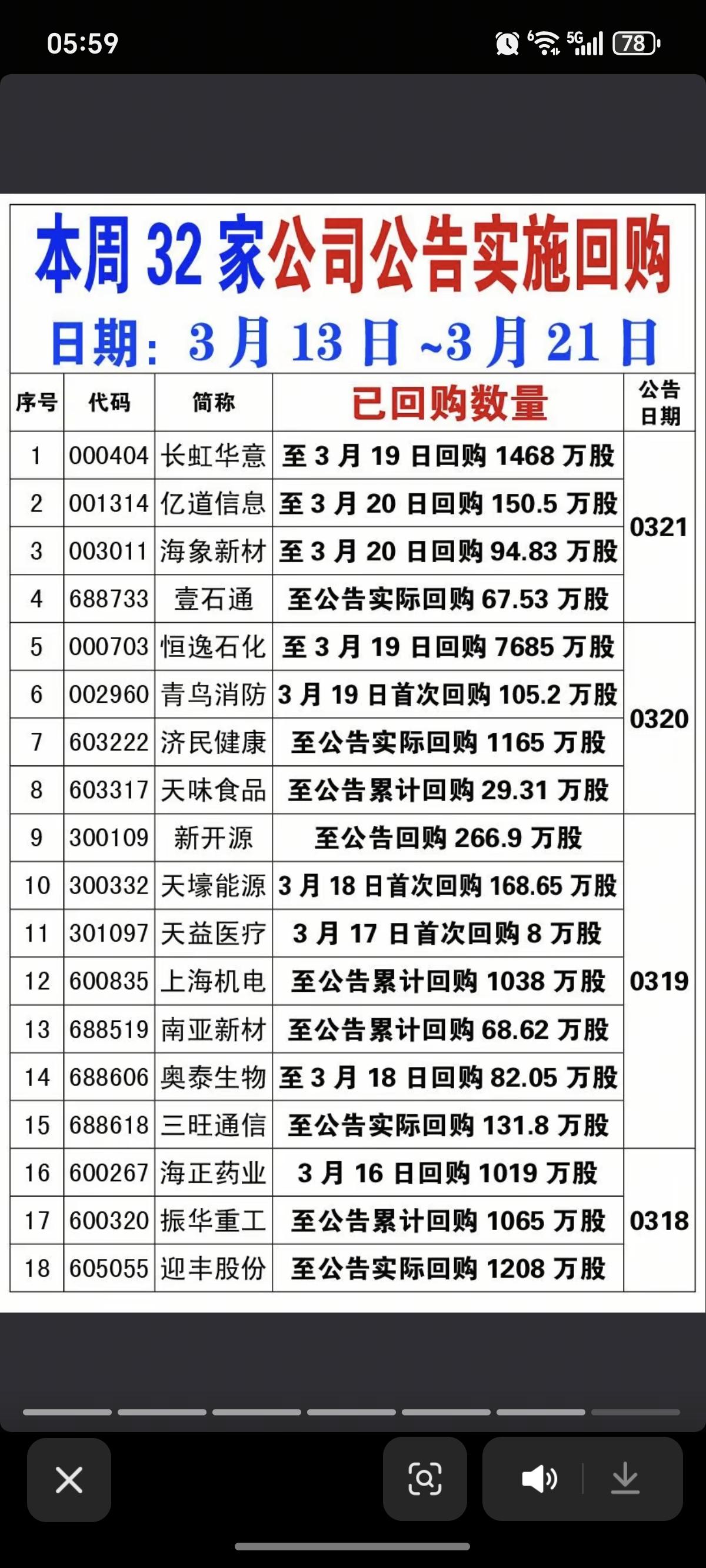 3.22周日 本周增持、回购公告汇总! 20家公司披露增持计划 48家公司披露回购股份 32家公司公告回购进展