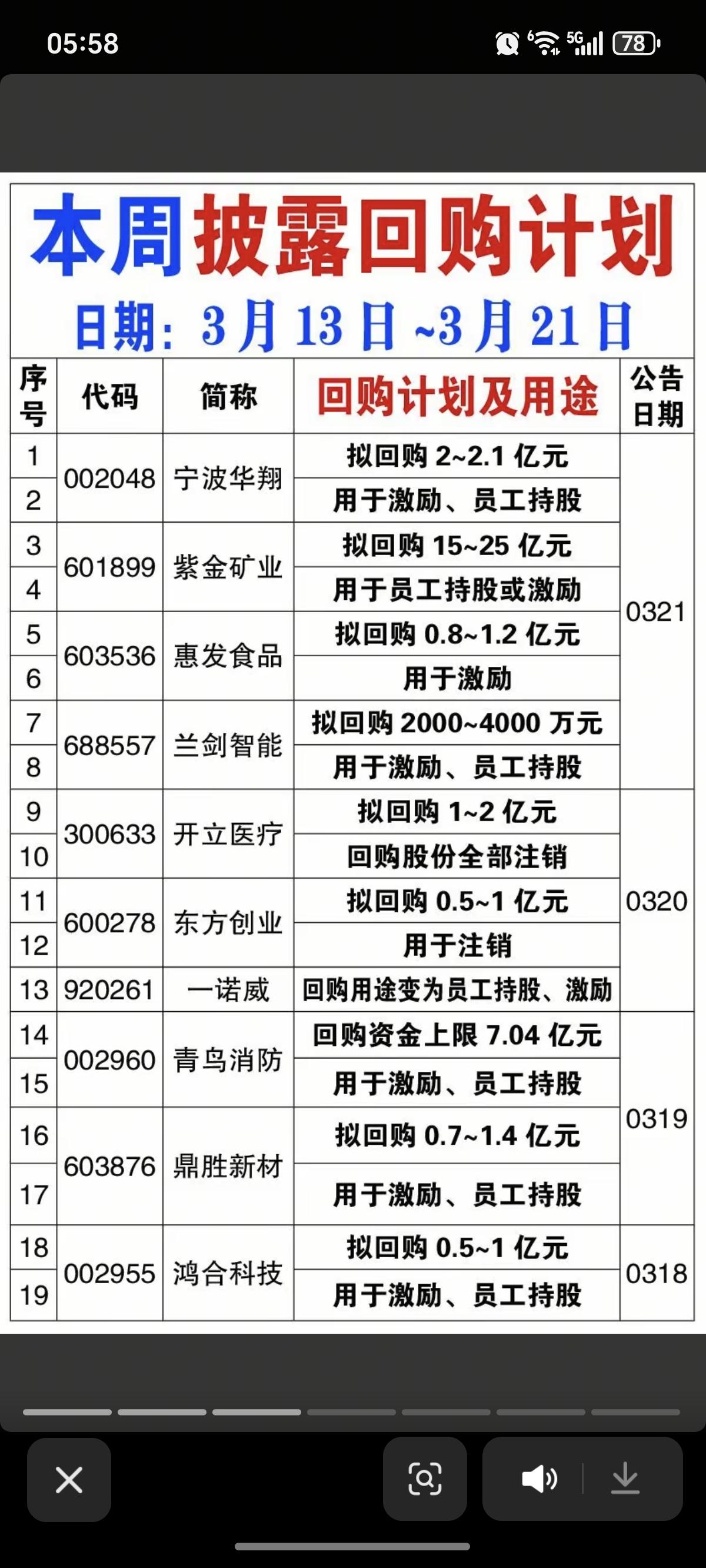 3.22周日 本周增持、回购公告汇总! 20家公司披露增持计划 48家公司披