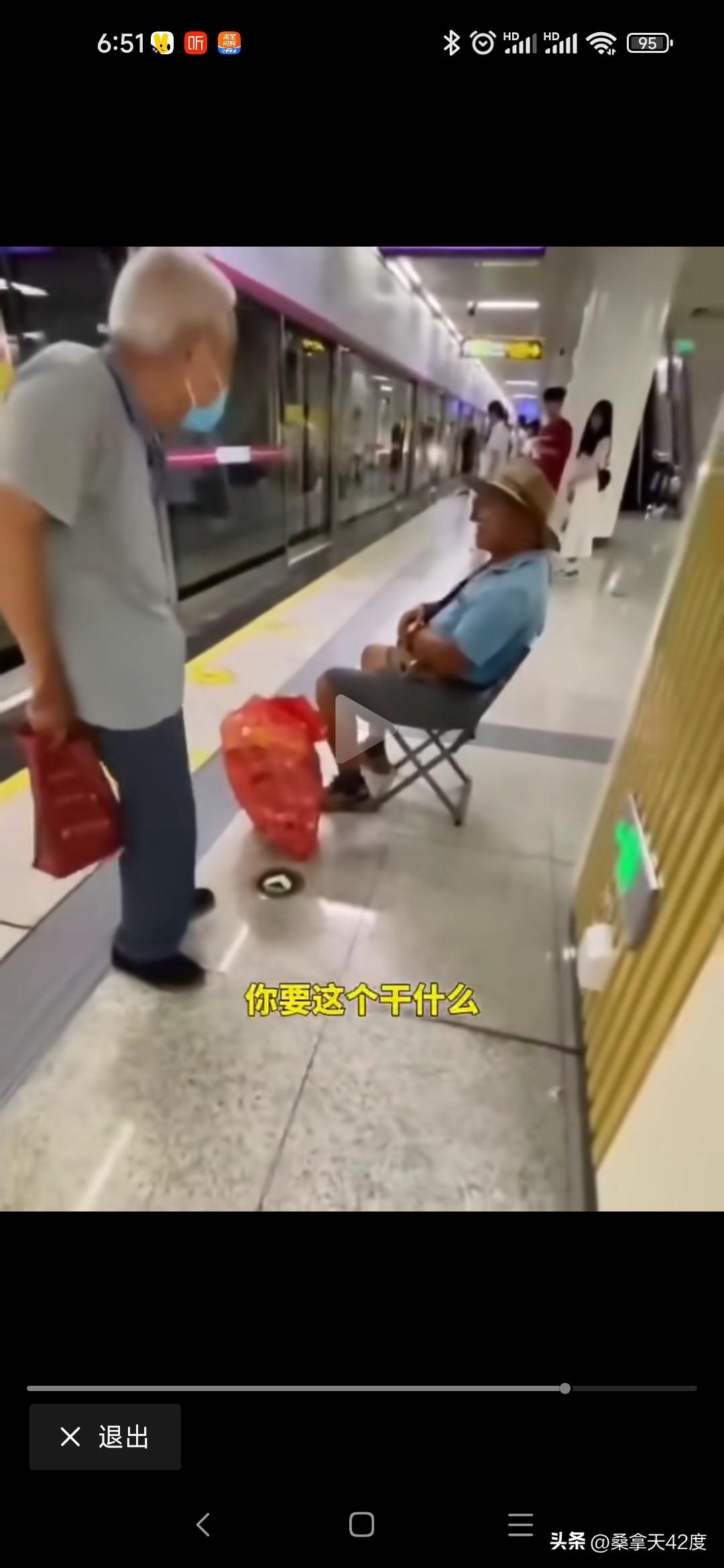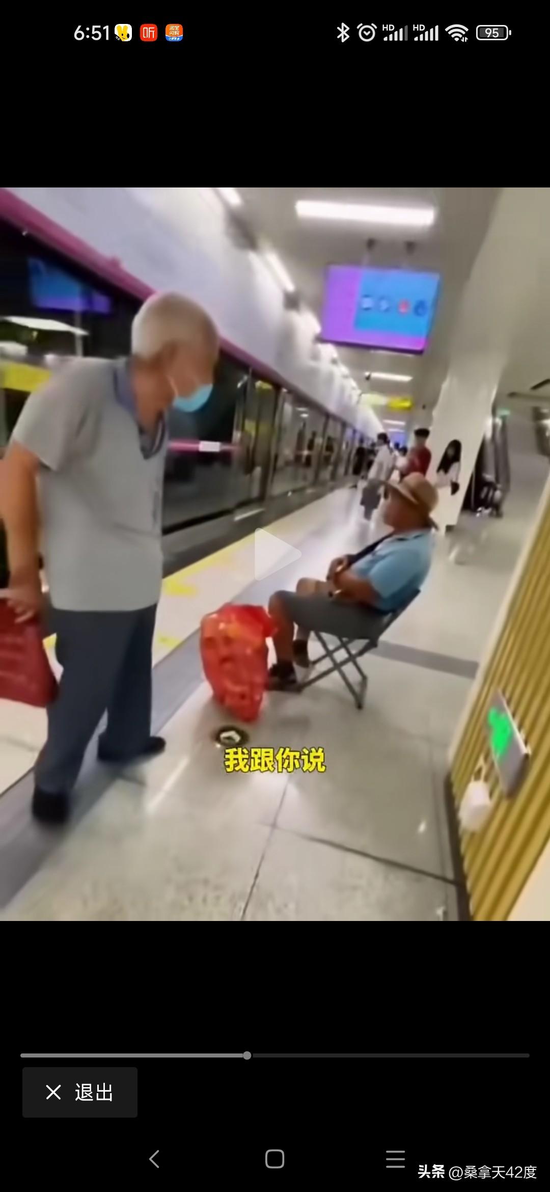 某日地铁站出现惊人一幕,一背包白发大爷大声呵斥另外一名坐马扎白发大爷。