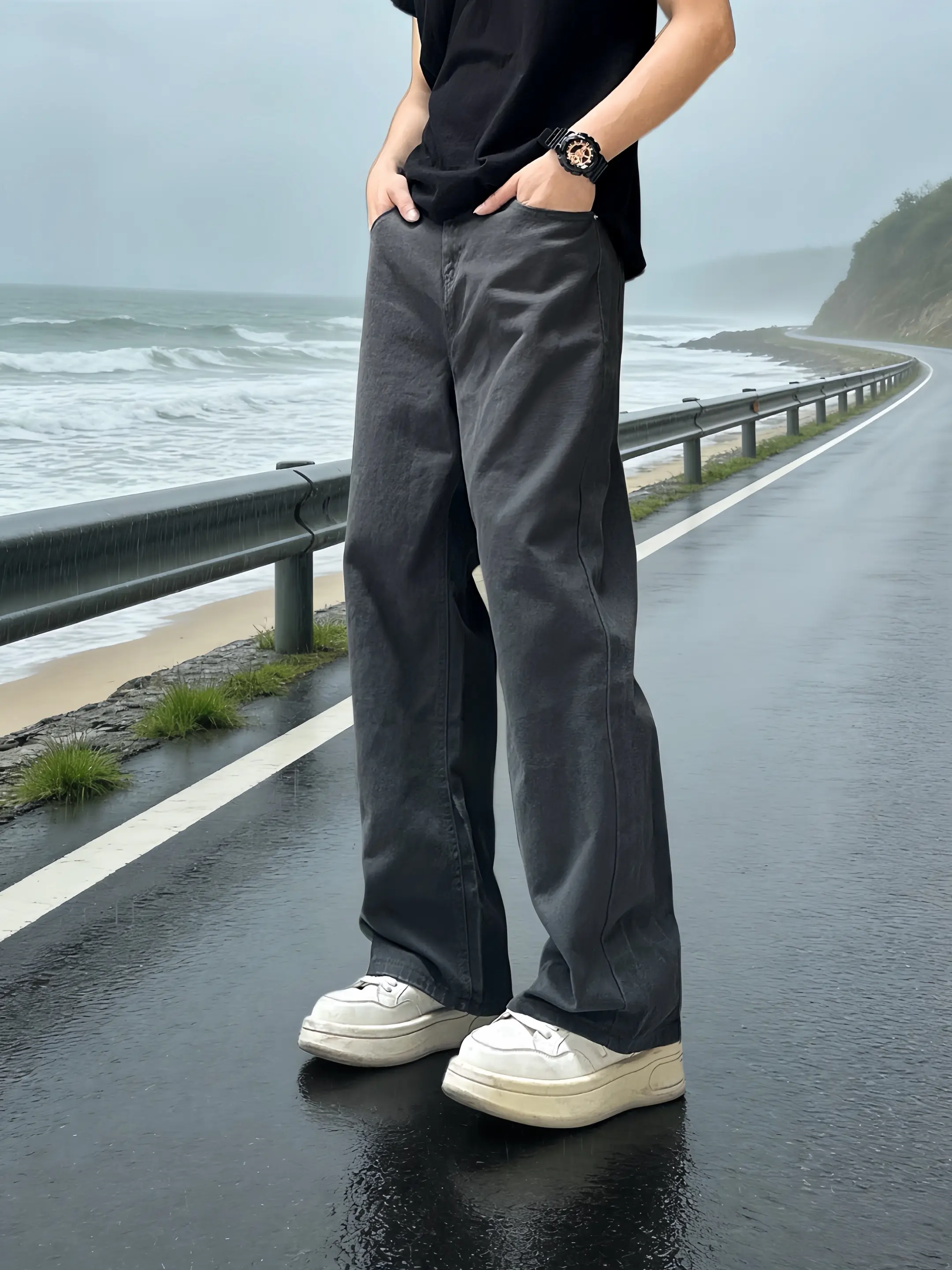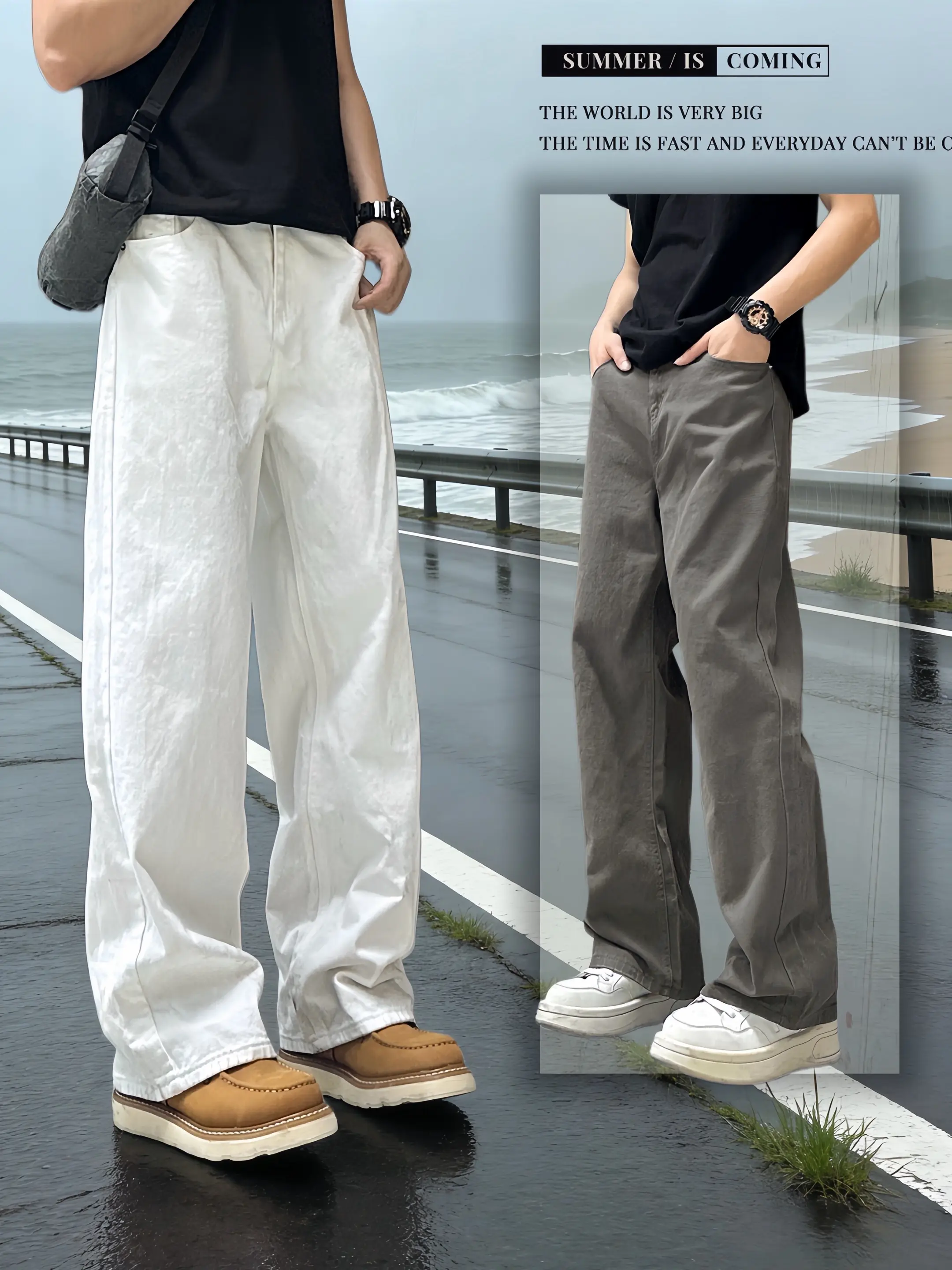 直筒裤 休闲裤穿搭 ins工装裤港风 极简穿搭 工装裤穿搭