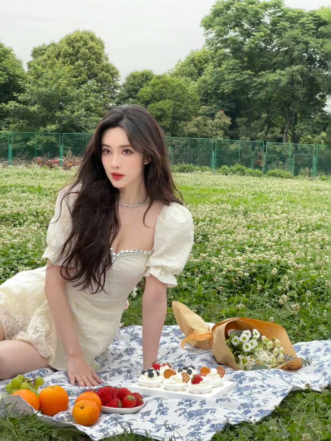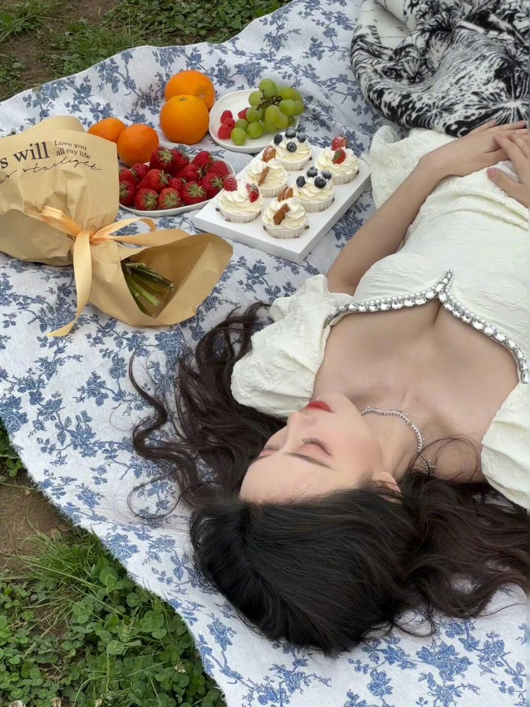 孟子义 风把三叶草的白星 铺成柔软的信笺 你躺在蓝花布上 睫毛轻颤 像蝴蝶吻过春天的眉尖 纸杯蛋糕的奶油甜香 混着橙子的暖 草莓与树莓 在指尖晕开绯红的晕染 花束裹着牛皮纸 把温柔折成可触摸的浪漫 阳光漫过发梢 把碎金撒在裙摆的褶皱间 你闭眼时 世界都放轻了脚步 怕惊扰这一场 与春天的温柔缱绻