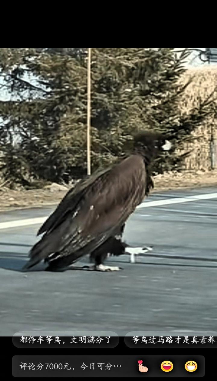吉林延边,一男子开车途经珲春某湿地时,被眼前出现的一只“巨鸟”惊住了。这只鸟正站在马路上,颜色乌黑,身形巨大,走起路来犹如人类,步伐稳健,在路面缓慢行走,过往车辆纷纷减速停车,主动避让,骑行人员也停下观察拍摄 视频发布后,不少网友表示少见,并不认识该鸟类,有人猜测属于大型猛禽。从外形与体型来看,其与当地常见的雕类较为接近,而珲春本身就是多种珍稀鸟类的栖息与迁徙区域,生态条件适宜鸟类生存。 大型鸟类出现在人类活动区域,一方面说明当地生态保护工作见效,湿地环境稳定,食物资源充足,为野生动物提供了良好的生存条件;另一方面也体现出市民保护意识的提升,面对野生动物不惊扰、不追逐,以文明方式避让,体现了人与自然和谐共处的状态。 雕类属于受保护的野生动物,体型较大,飞行能力强,多栖息在生态环境优良的区域,它们的出现是生态质量的直观体现。近年来,珲春不断加强湿地与自然环境的保护,野生动物出现的频率明显提高。 此次事件虽只是一次偶然相遇,但反映出的生态改善与公众保护意识提高,值得肯定。保护野生动物栖息地,规范自身行为,减少人为干扰,才能让更多野生动物安心栖息,让生态环境持续向好。 人与自然和谐相处,贵在尊重与包容,简单的一次避让,就是对生态最好的守护。