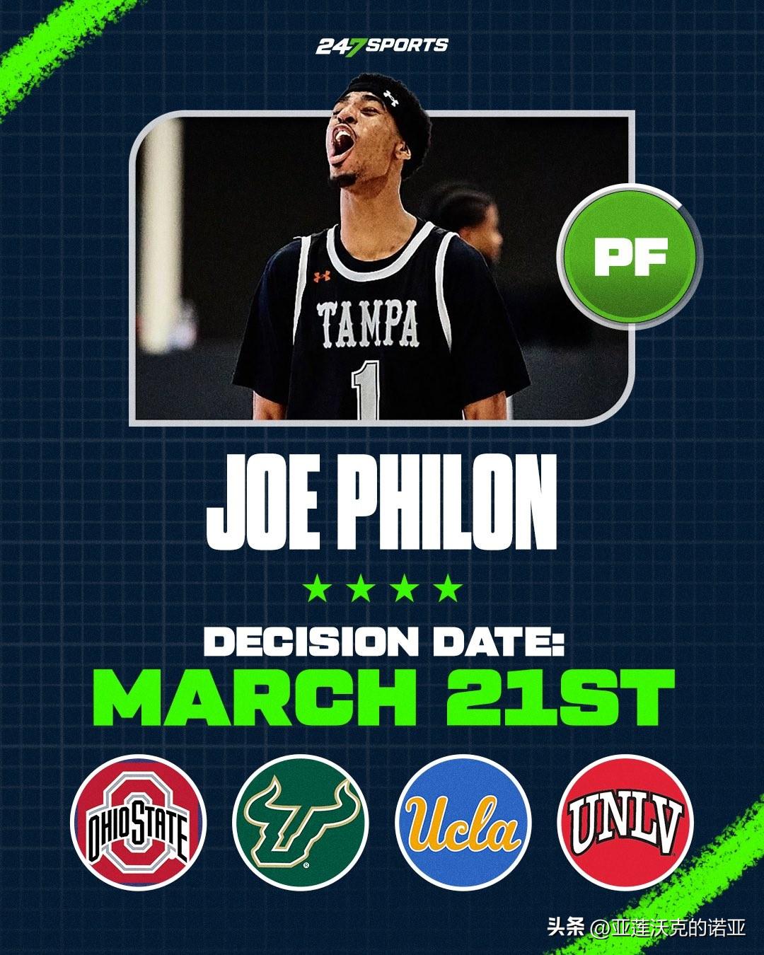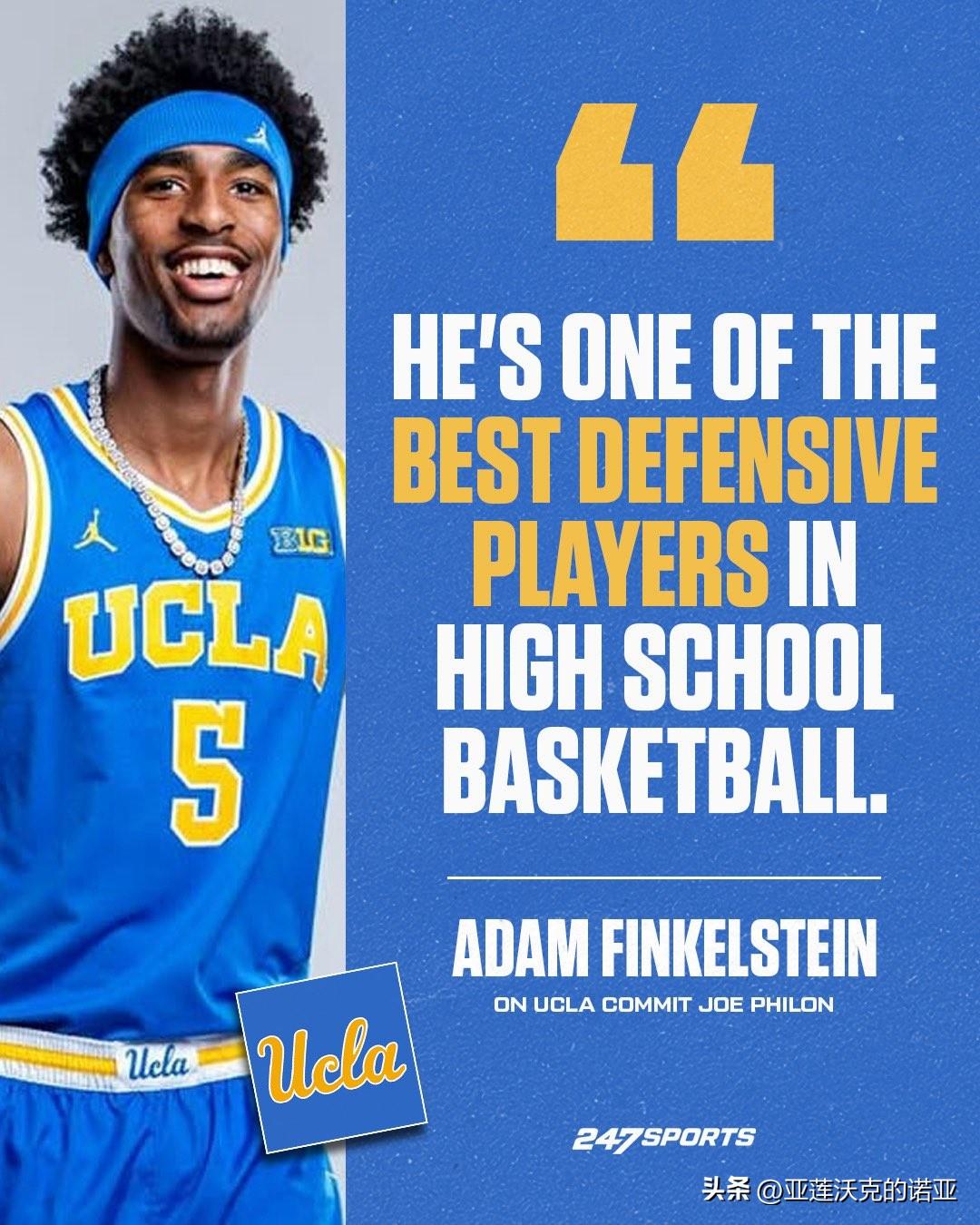四星前锋Joe Philon宣布承诺NCAA男篮 UCLA,表示能进入UCLA这样享有盛誉的学府,感觉真是不真实,主帅Mick Cronin对他很诚实,为他制定计划。克罗宁教练关心球员,这超过篮球的联系,虽然可能有点粗鲁,但他们就像家人一样,这届收到的第二位加盟者,之前还有内线Javonte Floyd。