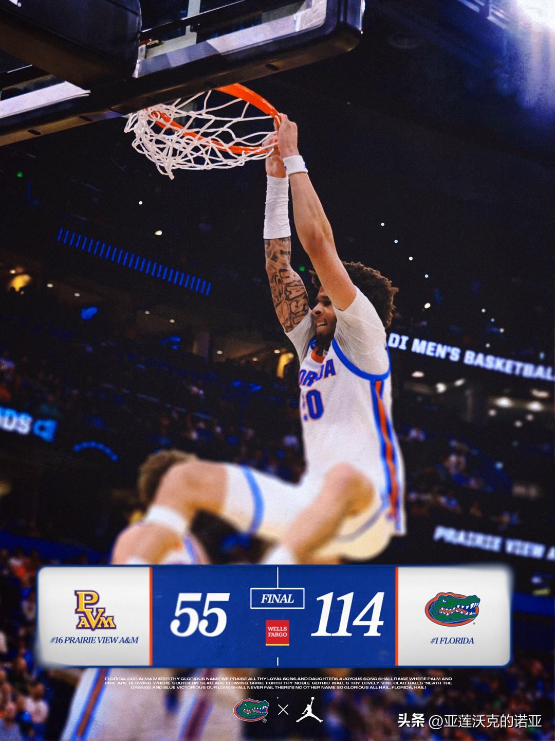 阿肯色大学将对阵High Point,Cam’ron Fletcher是卡利帕里John Calipari在肯塔基执教时的旧将,本赛季是弗莱彻的第六个赛季,疯狂三月 佛罗里达大学以114比55大胜16号种子Prairie View A&M,开启鳄鱼全国冠军卫冕之旅,这场59分的胜利也成为NCAA锦标赛历史上第二大的分差。