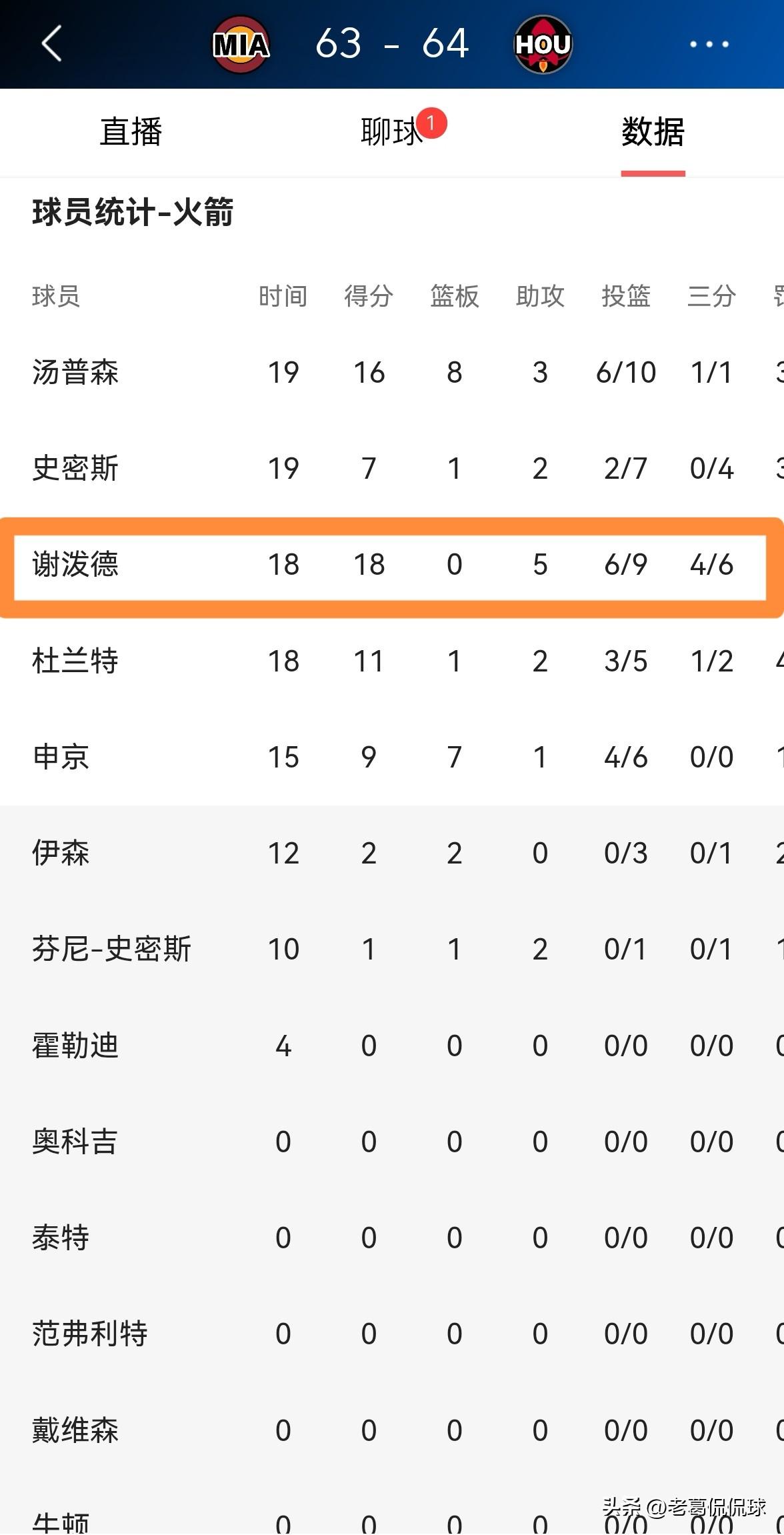 火箭新星谢波德真是星光熠熠!在今天火箭主场迎战热火的比赛中,目前双方半场战罢,火