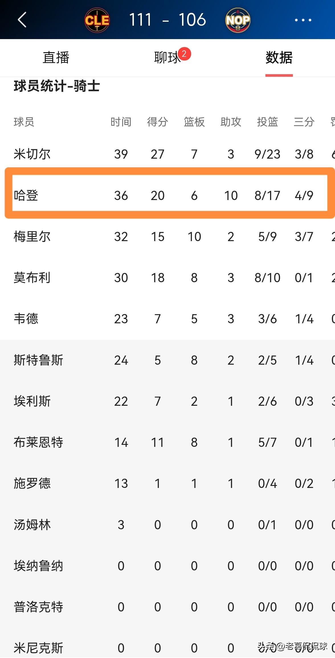 骑士官方真是太懂人情世故了!在今天骑士客场以111:106力克鹈鹕的赛后,骑士官方专门更新社媒,晒出了一张赢球海报,以此来祝贺球队的获胜。值得注意的是,本场比赛砍下20分6篮板10助攻的哈登成为了赢球海报的封面人物。 实事求是的说,以哈登在本场比赛中的精彩发挥来看,哈登能够荣登球队的赢球海报是实至名归的,骑士官方理应让哈登获此殊荣。