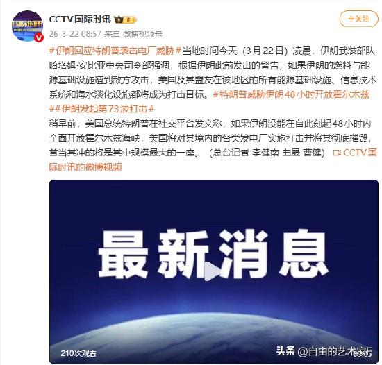 果然不出所料,特朗普的通牒,伊朗人回应了,让中东无言以对 3月21日,以色列攻击了伊朗纳坦兹核设施,随后,在3月22日伊朗人对以色列发动了疯狂的报复,袭击了伊朗的迪莫纳核研究中心,造成了50多人死亡 在第二次的袭击中,伊朗再次将以色列引以为傲的防空系统打穿,不知道伊朗的导弹是有偏差,还是故意有偏差。在距离迪莫纳核反应堆差不多12公里左右,击中了阿拉德市的一座楼造成了约80人伤亡, 以色列军方随即下令,将会全战线对伊朗进行作战,战犯内塔尼亚胡更是装模作样地在社交平台发文,称以色列在今晚关乎未来的战斗中非常艰难,他为所有的伤员祈祷 特朗普这边看到以色列被炸得如此之惨,第一时间坐不住了,对伊朗发出一个48小时的通牒要求伊朗开放霍尔木兹海峡,如果伊朗不照办的话,那么美国将摧毁伊朗所有的发电厂 在不到一个小时之内,伊朗革命卫队做出了回应 ,哈塔姆·安比亚中央司令部,警告特朗普,如果伊朗的电厂与能源基础设施遭到美国和以色列的攻击, 那么美国及其盟友在中东地区的所有能源设施,信息技术系统,以及海水淡化厂将成为伊朗人的合法目标。 对于该事件,我们是怎么看的?根据目前的种种迹象来分析,美国向中东派去了大量的美军。似乎正在和以色列为打地面战所做准备。 伊朗人在被美以的联合袭击中,虽然很痛,但是他们已经站稳了脚跟,有广袤的国土和愤怒的国民以及为伊朗完全战斗不怕牺牲的士兵。已经有了赢得这场战争的先决条件。 如果这场战争继续进行下去,倒霉的不单是伊朗人,也将是美国人和以色列人,更有那些瑟瑟发抖的中东多国。