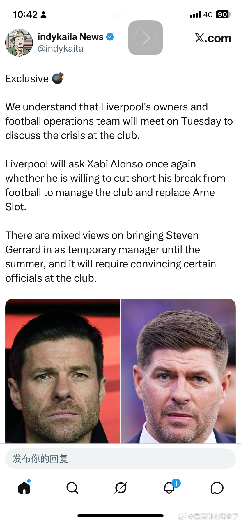 利物浦将再次询问阿隆索,是否愿意提前结束休假重返足坛执教,以接替斯洛特。