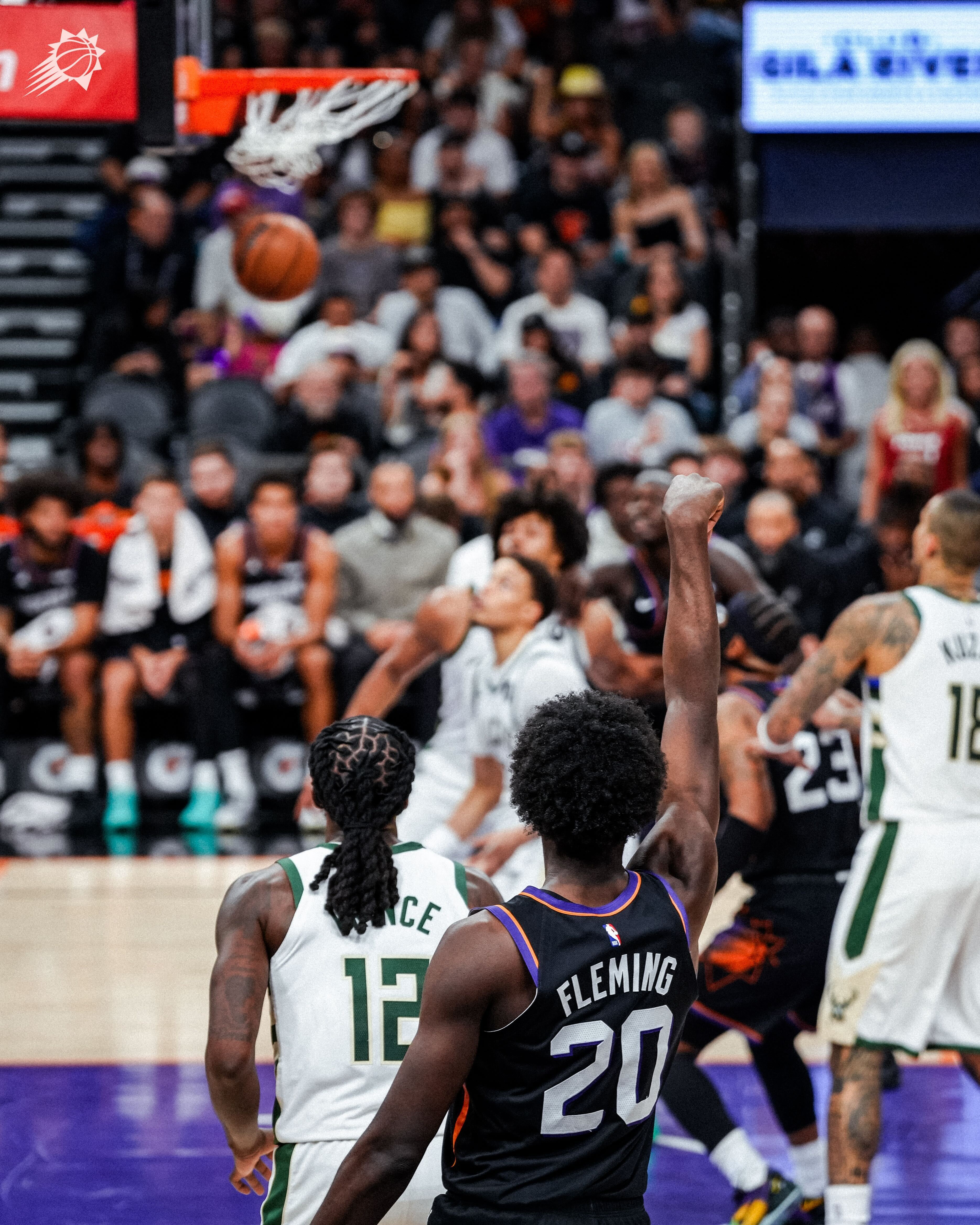 FLM底角三分命中!🎯随后格林上篮也打进,雄鹿叫停菲尼克斯太阳 |旭日东升 |