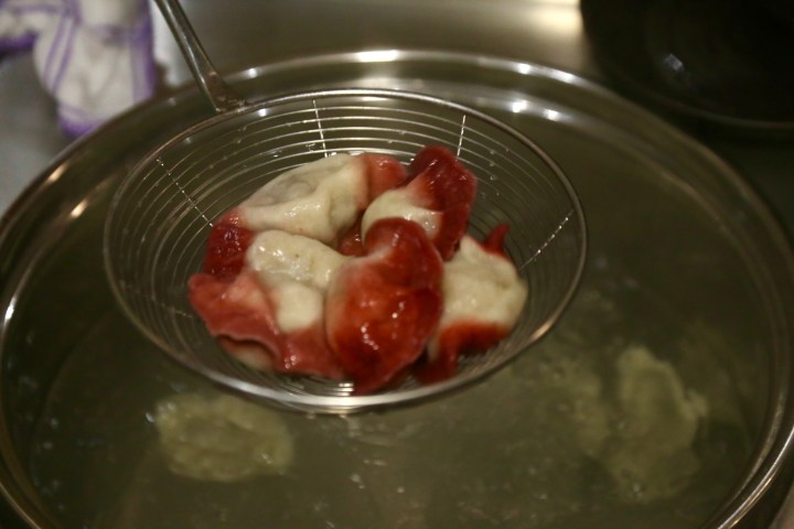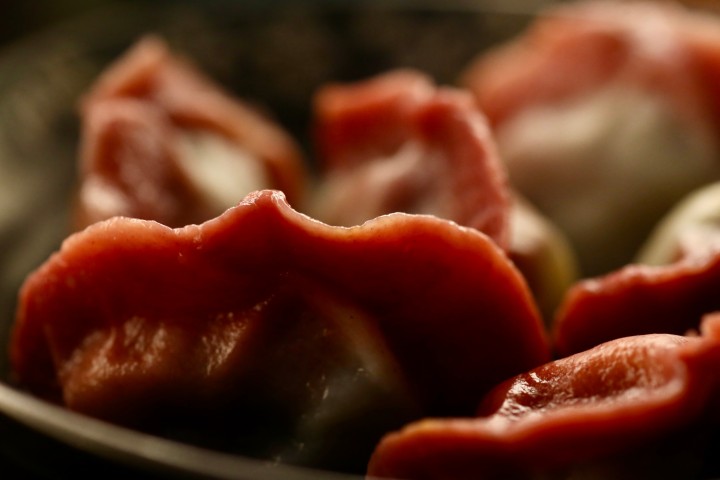 呐,这就是自创口味中顶受欢迎的淘气微醺红曲,微微泛红的饺子皮,是以红曲为原料制作——毕竟老板娘在开这间小酒馆之前,做了好几年米酒生意,对酒也有自己的理解。