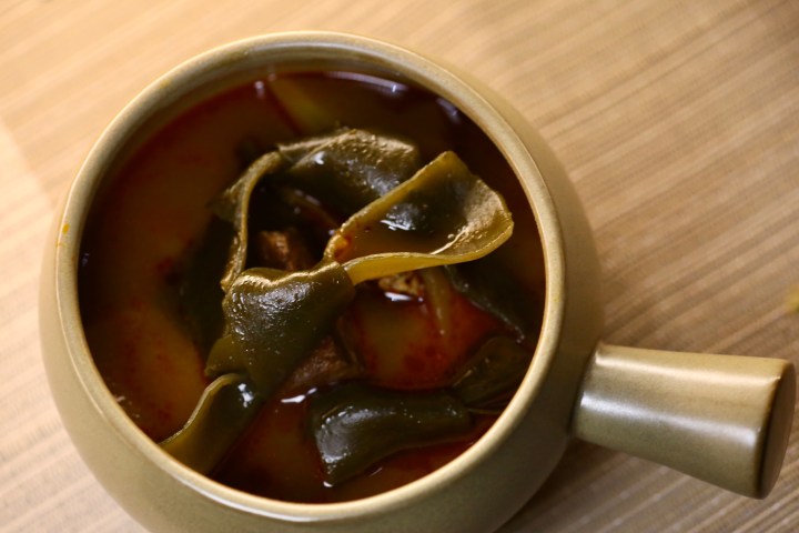 除了饺子,老板娘做的卤味也很棒,软糯而不失弹性的鸡爪、有肉有骨的翅膀、入味的卤蛋,再就是这一锅关东煮,底汤是台州老家的发酵风味,这一刻,我认同了老板娘的浙江DNA。