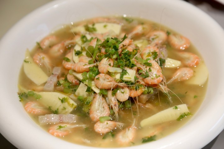 青雪菜冬笋大白虾是张诚的拿手菜之一,也是我每次必点的单品,配料其实非常简单,就青雪菜、冬笋、咸肉,再加上应季的优质白虾(换成河虾也一样赞)。放眼望去,是四重鲜味叠加后释放出属于杭州的终极鲜美。