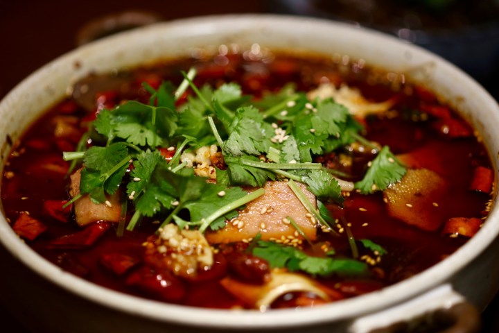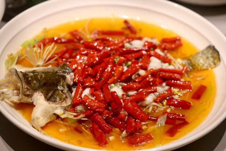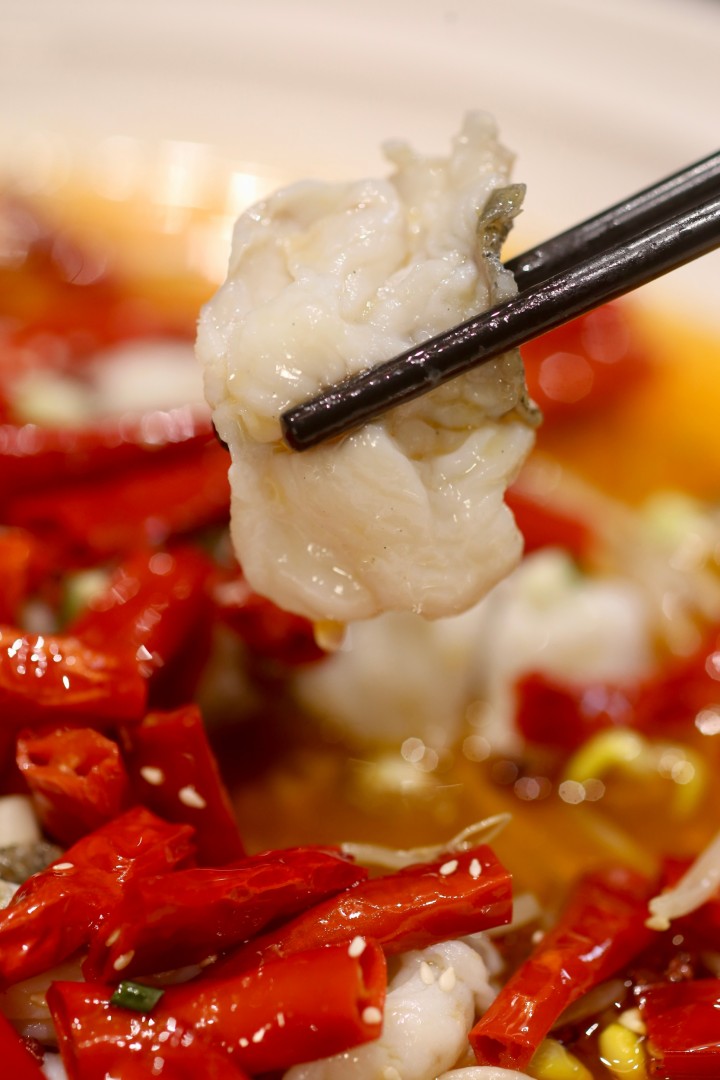 沸腾鳜鱼是继麻麻鱼蛙后推出的又一款辣菜,大家对它都很熟悉,不过这里的红彤彤不是为了辣,更多是起到调色作用,鱼鲜被很好地锁住,是大多数杭州人都能接受的开胃辣。