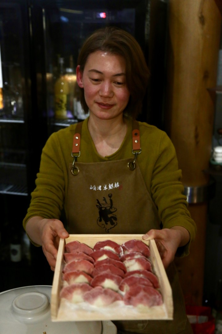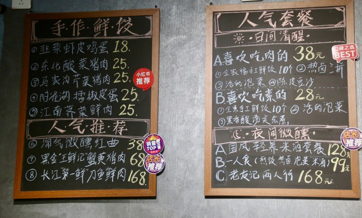 为什么会开一间做饺子的酒馆?老板娘说:“饺子是人间烟火,是生活本真;酒是松弛的理想。一半烟火谋生,一半理想谋心。烟火与温柔,缺一不可。”现在店里用的酒基本上都出自她参与创建的米酒品牌“山海津”,听名字就知道这是以《山海经》为灵感,不同的酒款都有介绍,提示了不同的风味。而对饺子馅,她也有解读,食材来源有山有海,与店名产生呼应。