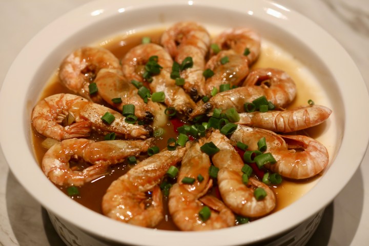 硬壳虾,是三门籍摄影大哥经常挂在嘴边的“台州特产”之一,技术要点是新鲜在、虾头在,只要有那么一点不新鲜了,虾头就脱落。所以这一整盘的虾头都完好地与虾身连在一处,咬开硬壳后,就能吃到吸足汤汁的虾肉了。