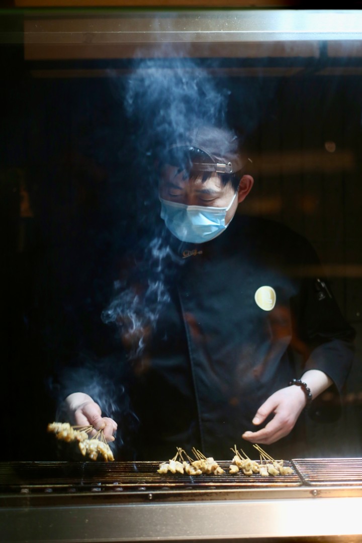 对了,他们还做烧烤,种类不多,却都是夜宵经典,举着肉串拍照,营造出活色生香的氛围感。