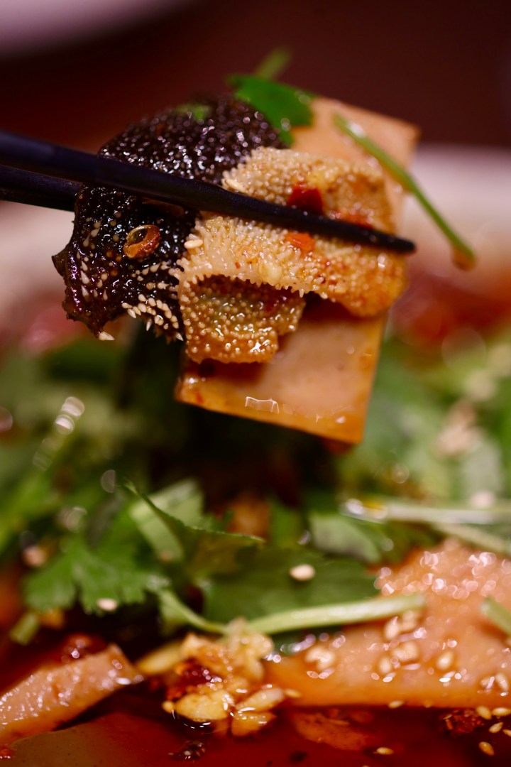 但事实上,之后的几个菜似乎都没那么辣了。比如川香毛血旺,不像传统川菜馆子里的那么重油重辣,毛肚软、午餐肉嫩。