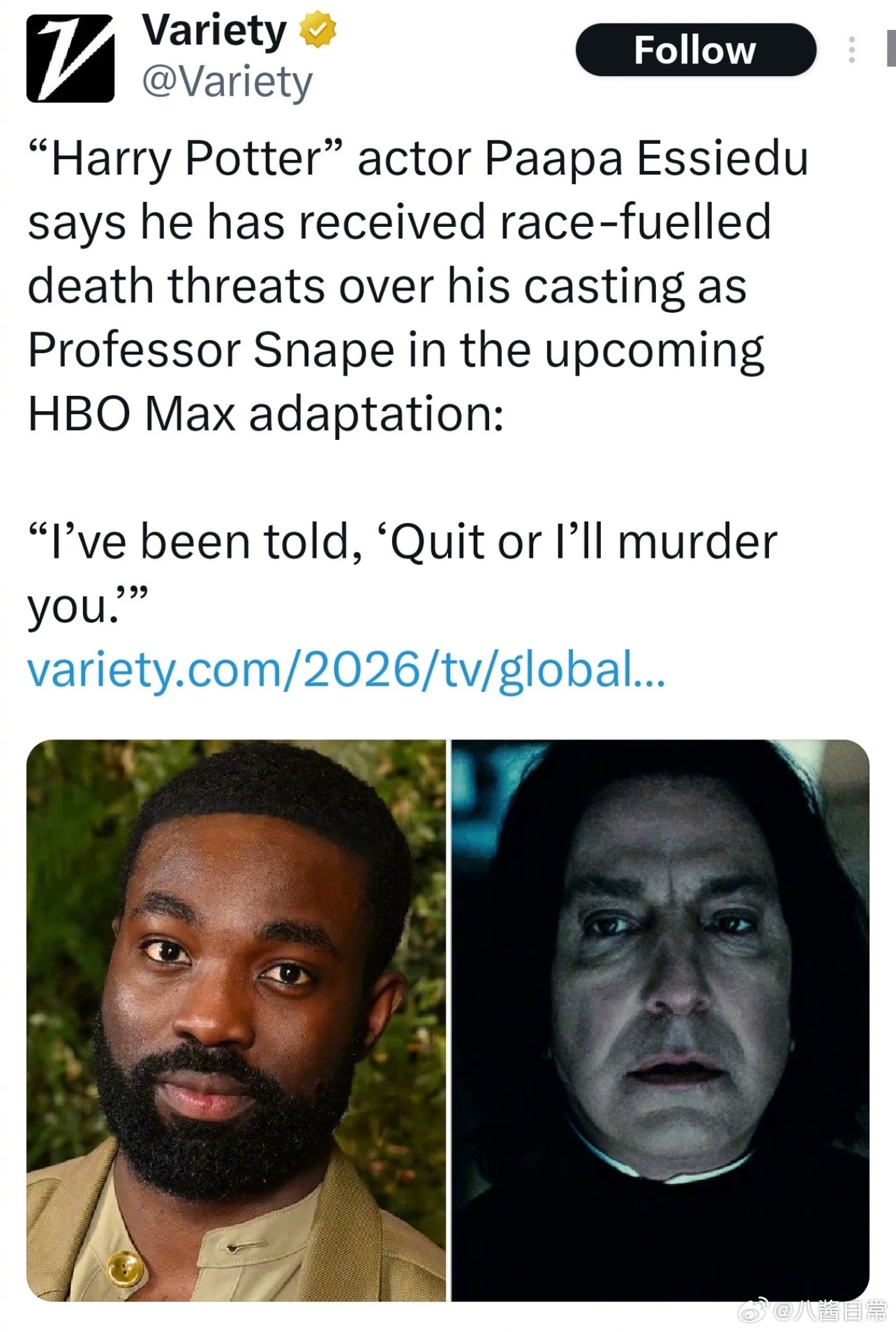 剧版《哈利波特》斯内普黑人演员Paapa首次回应出演争议。表示由于他将饰演斯内普