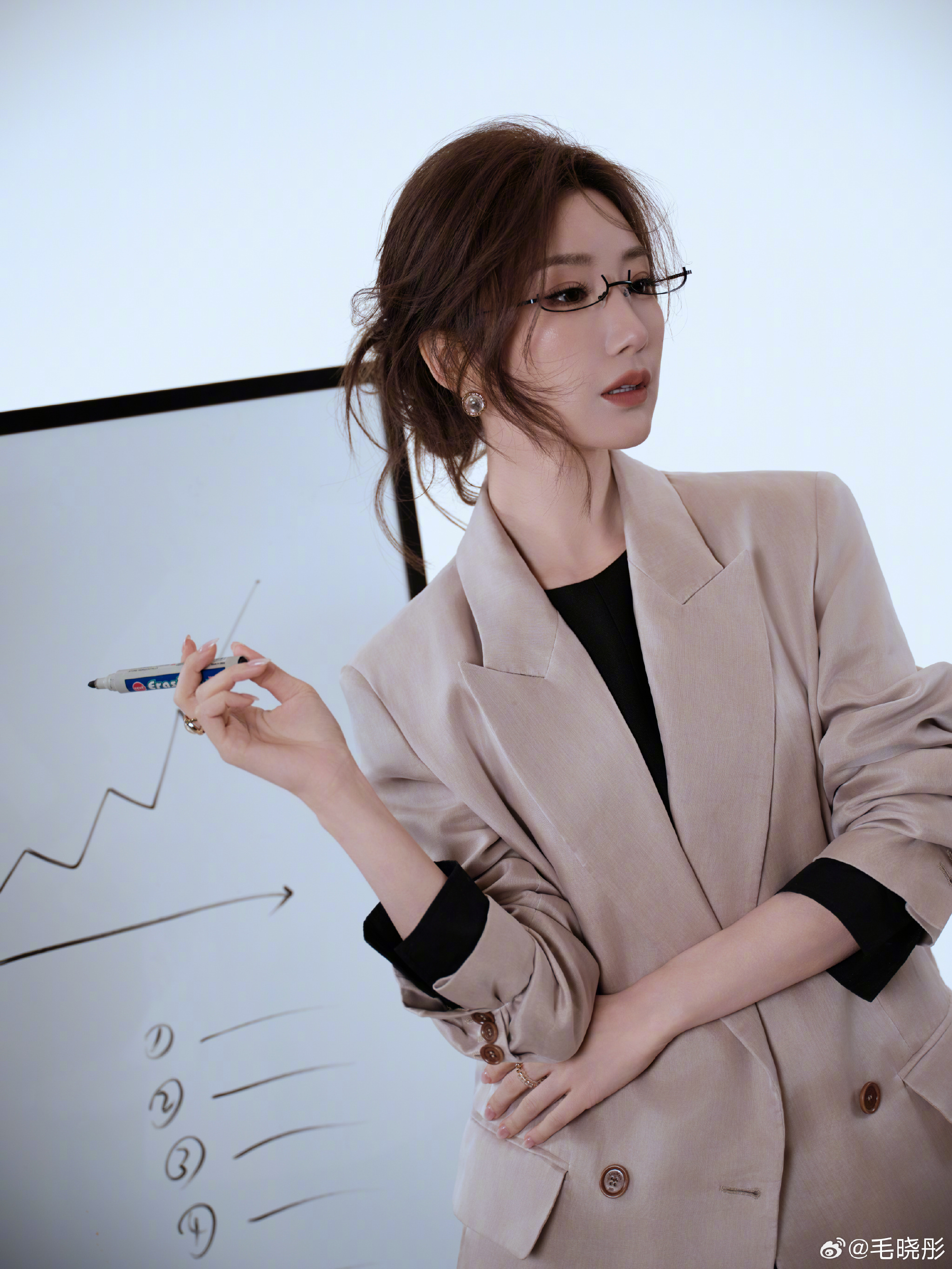 毛晓彤这组精英白领造型太绝了!从甜妹到职场御姐只需要一副眼镜,利落西装+微卷长发,感觉下一秒就要在白板上自信开讲了!又美又飒谁能不爱?7块6的眼镜都能戴出大牌感,这颜值和气质真的没谁了!
