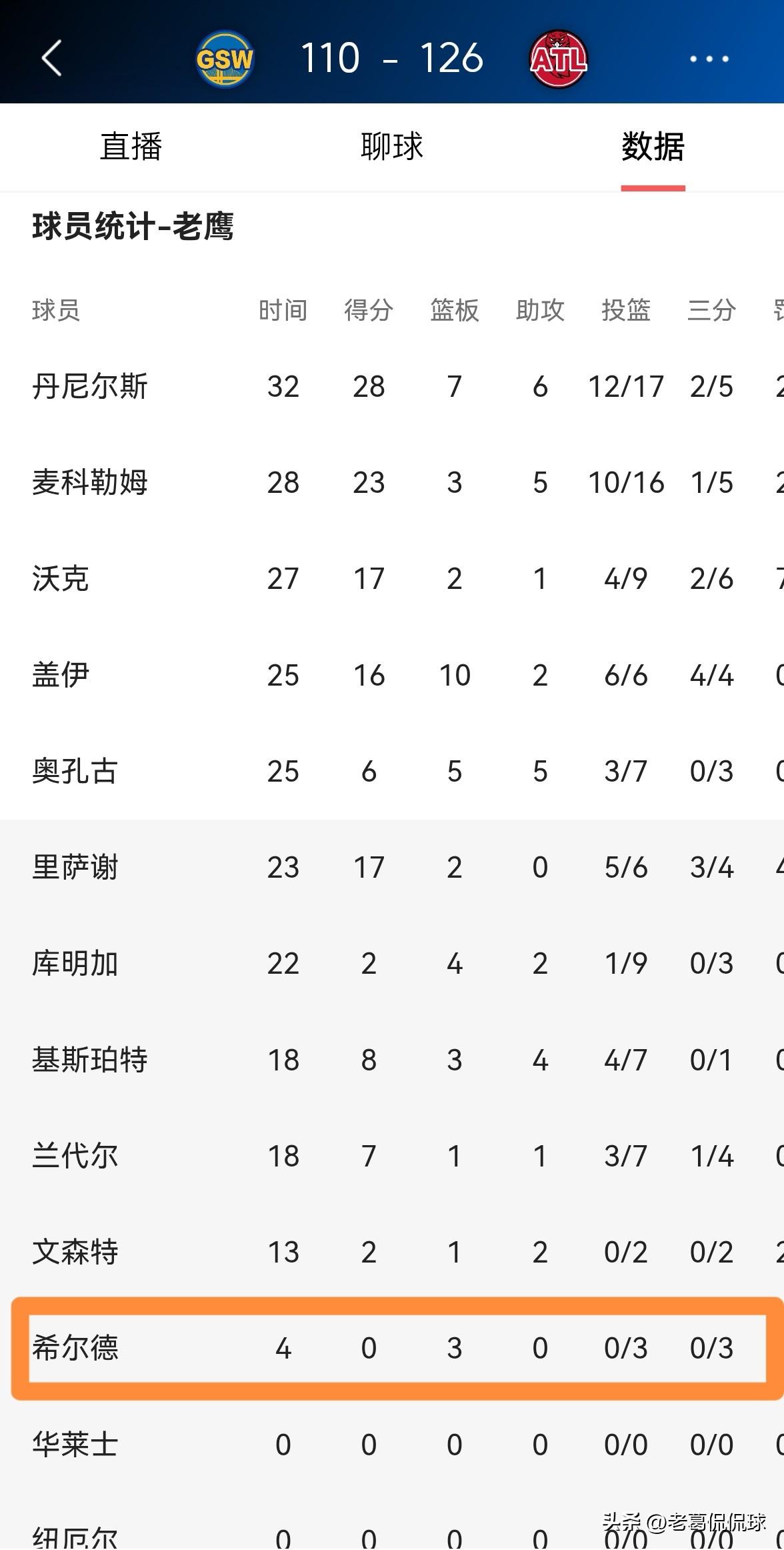 老鹰神射手希尔德真是太想证明自己了!在今天老鹰主场以126:110大胜勇士的比赛