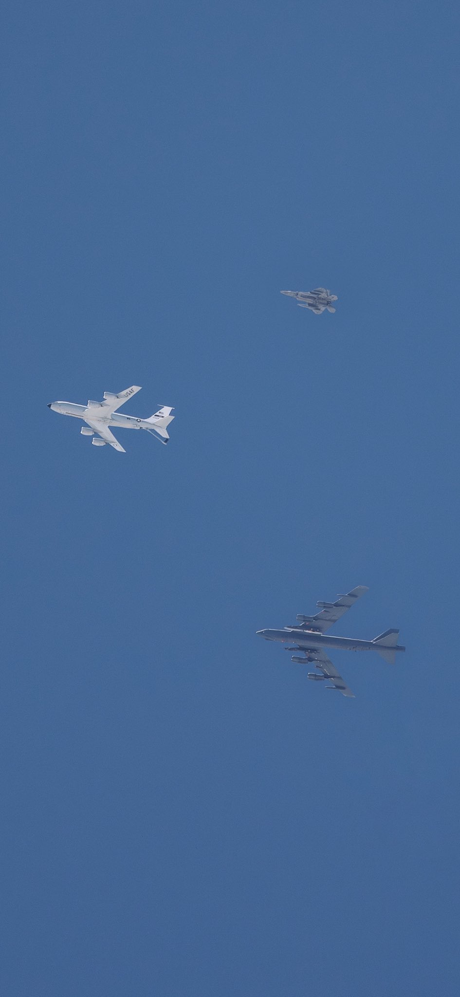 今日猛禽 “应对高端威胁”——之前在展会上曾经以模型形式出现的娘娘外挂低阻隐形副油箱(LDTP)和IRST吊舱的升级形态终于成为现实,并且与挂载新型弹药的B-52轰炸机一起飞行。然则这大洋彼岸的“高端威胁”,却是一刻都没停止过演进。