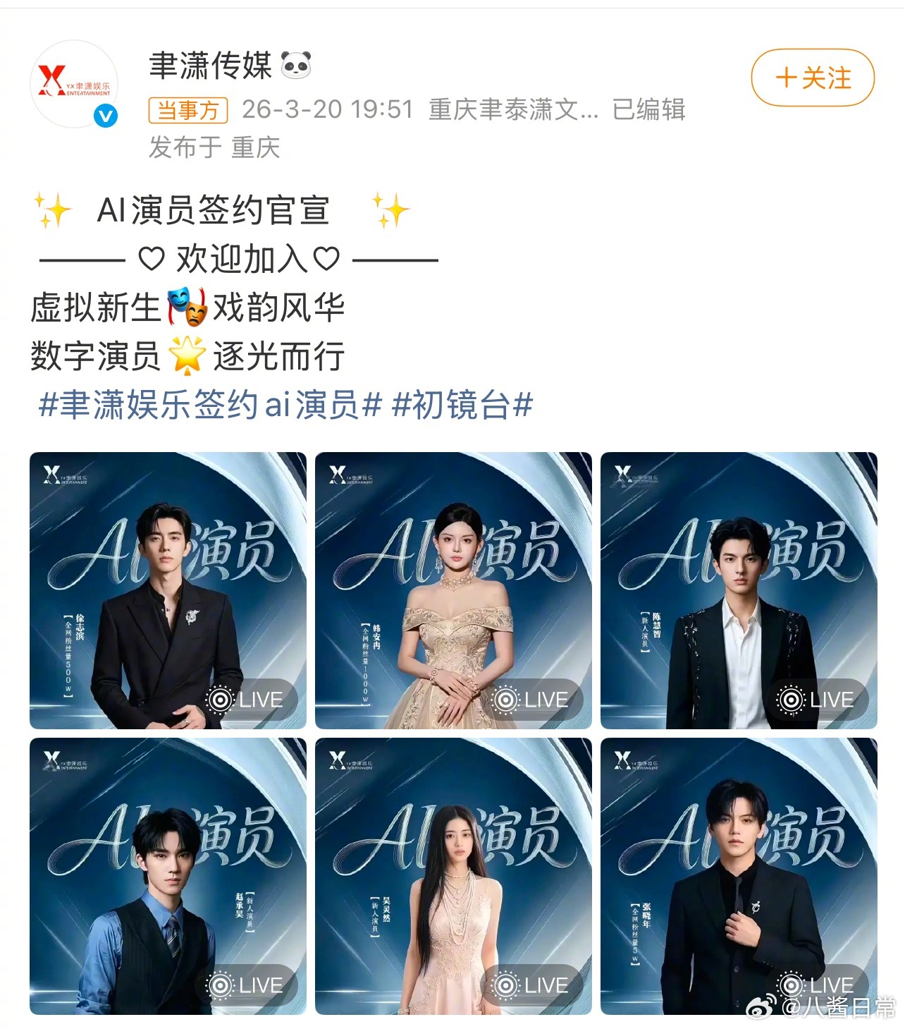 AI演员还搞上签约了AI演员签约官宣