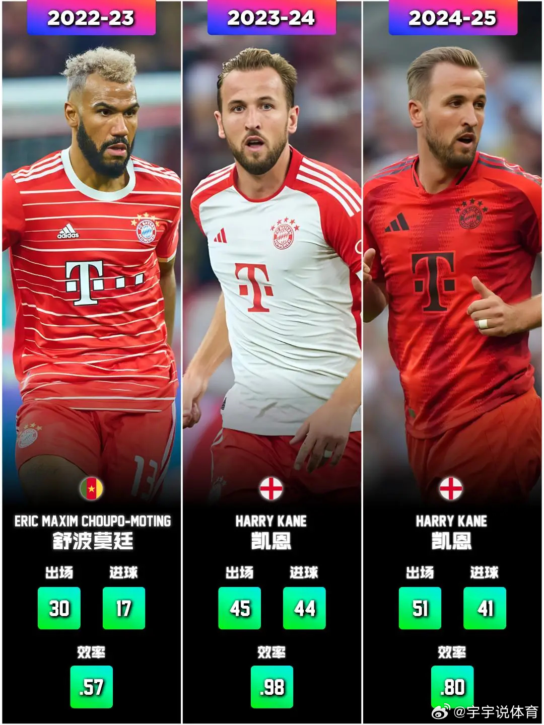 以上数据统计囊括了所有正式比赛,而非仅限于联赛。在排名规则上,若两名球员进球数相同,则将根据其进球效率(场均进球数)来决定座次,效率高者位列前列。拜仁是真会看中锋,个个都好用,而且就喜欢用成熟老油条,这个不服不行。拜仁vs柏林联合