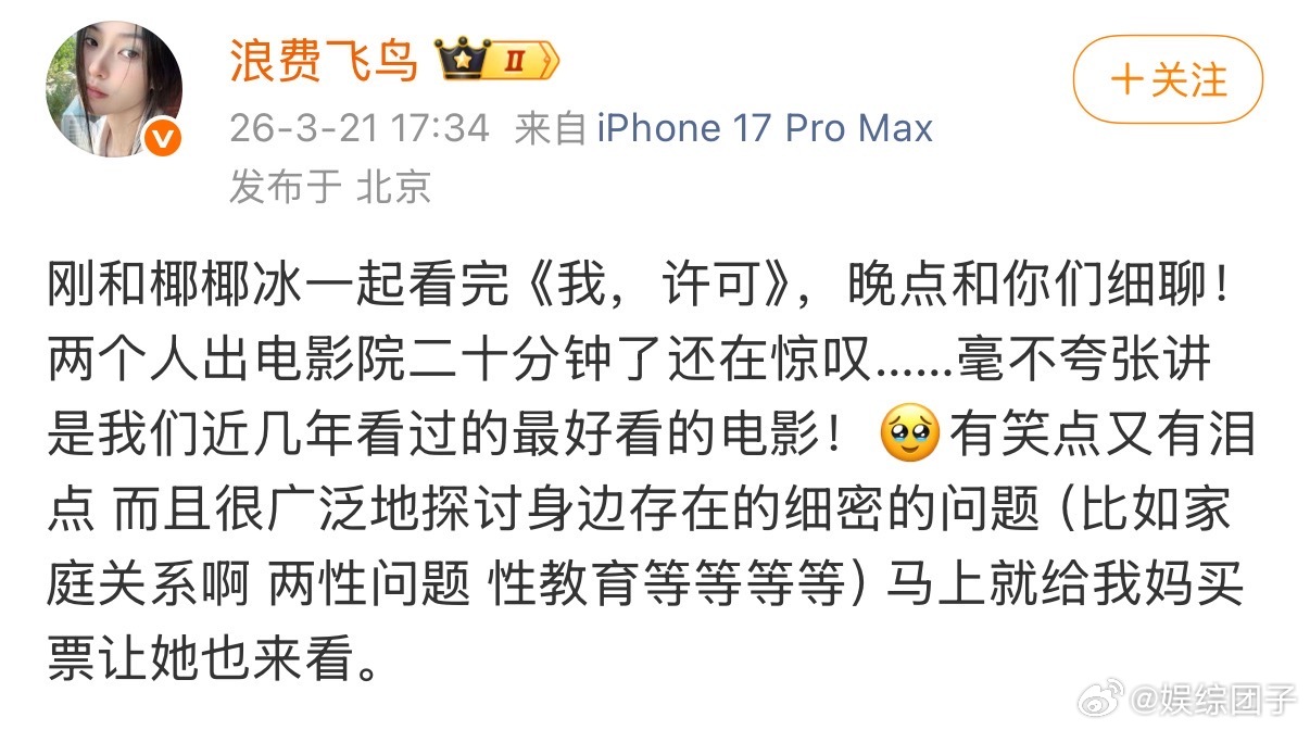 文淇我许可点映口碑文淇新片点映口碑 《我,许可》点映收获热烈好评,文淇用真挚演技征服观众,母女情感动人,笑声与泪水齐飞。