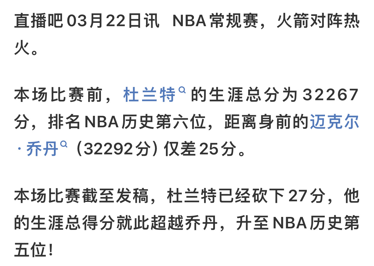 杜兰特超越乔丹位列历史得分榜第五