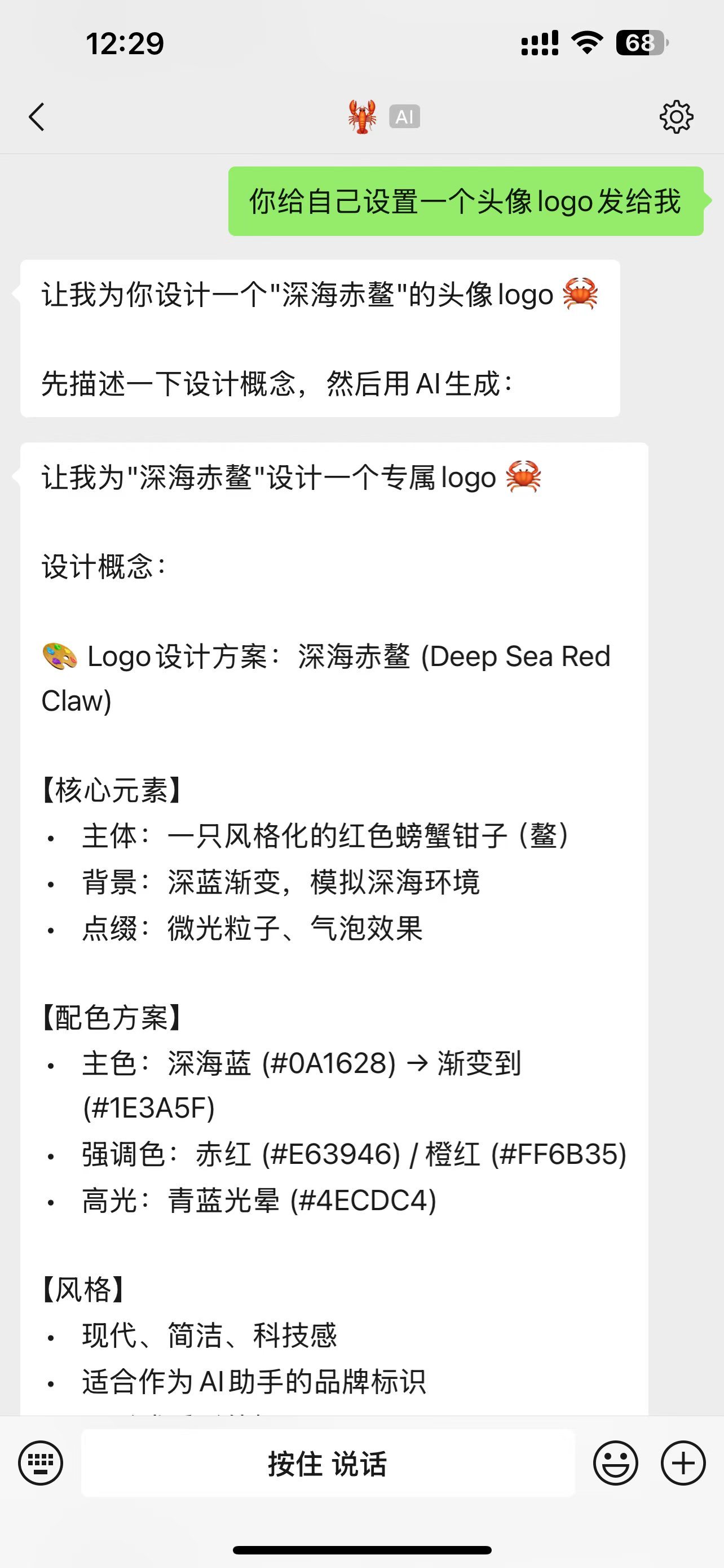 我滴龙虾给自己生成了一个头像