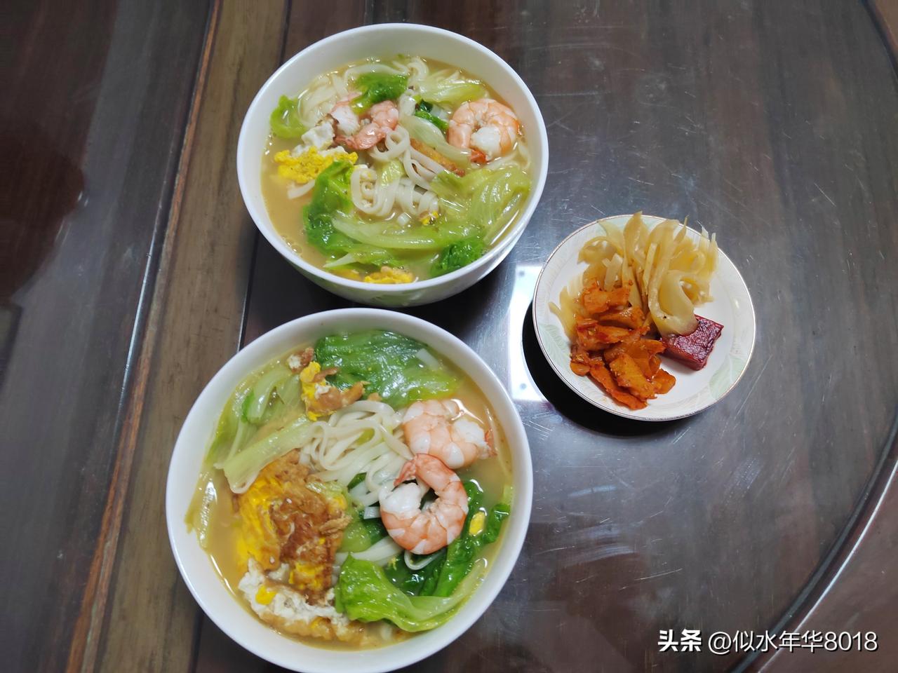 今日南京晴暖加码,最高温度已升至21℃,白天暖意融融,体感舒适,十分适合外出踏青或洗衣晾晒。 早上煮了小米南瓜粥,里面放了红枣和莲子,把玉米、茶叶蛋、包子上锅蒸一下,早饭就好了,小菜是腌姜丝、豆腐乳和萝卜干。 根据最新的天气预报,从明天起阴雨天又来,趁着今天阳光好,上午在家赶紧把两床被套床单洗了。正好气温也回升了,把冬季盖的厚羽绒被换下来。中午两个人吃生菜虾仁面,还有昨天剩的一点红烧鸭子也吃光了。 在这春光明媚的日子里,祝友友们周末愉快,四季平安,健康快乐每一天!