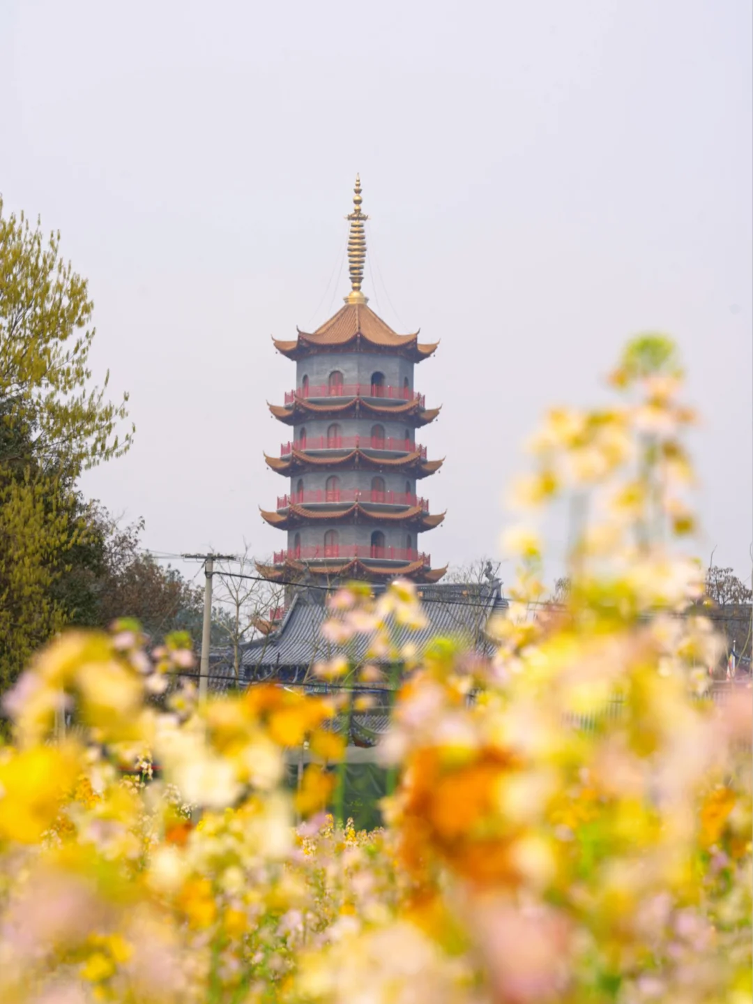 2. 万佛塔背景:站在花田里,以寺庙的万佛塔为背景,古风与现代感结合,氛围感拉满!
