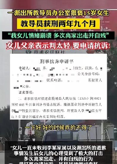 简直禽兽不如!民警在派出所强制猥亵15岁少女,摸胸生殖器侵入口腔等不堪行为却只被判罚2年9个月有期徒刑!! 2026年3月21日,福建宁德一起令人愤怒的案件被曝光:当地一派出所教导员李某,在自己的办公室里猥亵15岁少女,一审被判有期徒刑两年九个月。女孩父亲无法接受,直言判得太轻,要申请抗诉,只为给受重伤的女儿讨个公道。 事情发生在2025年6月16日下午,福建宁德霞浦县牙城派出所,15岁的女孩儿跟着妈妈走进教导员李某的办公室。 她是因为和别人打架来处理的。当时李某找了个理由把女孩儿妈妈支走。妈妈离开时还觉得挺放心——毕竟对方是派出所教导员,能出什么事?把孩子交给警察可以说是放一百个心。可她万万没想到,这个穿着警服的人,会在办公室里对她女儿做出那样的事。 李某先是以“你可能被拘留”相威胁,随后强行猥亵了这个15岁的女孩——抚摸她的胸部,甚至将生殖器侵入她的口腔并抽插。 一个花季少女,在派出所办公室里,经历了什么,光是写下这些文字,都让人觉得恶心和愤怒。 女孩回家后,精神彻底崩溃,把遭遇告诉了家人。父亲又气愤又心疼,立刻报警。警方很快介入,在李某的办公室、警服、椅子毛巾,甚至女孩当天的鞋子上,都提取到李某的生物检材,DNA比对完全吻合。铁证面前,李某无从抵赖。 2026年3月16日,霞浦县法院一审宣判:李某犯强制猥亵罪,判处有期徒刑两年九个月。法院也认定了几个从重情节:侵害未成年人、利用职务便利、手段恶劣。但因为李某认罪认罚,最终从轻量刑。 案子判了,李某也进去了,可事情并没有就此结束。这件事很快在小镇上传开,各种流言蜚语满天飞。有人说她被强奸了,有人添油加醋编得更离谱。 镇上的人议论纷纷,看她的眼神都变了。她曾经的朋友们,有的听说了闲话后开始远离她,有的被家长叮嘱“别跟她玩”。原本熟悉的生活圈,一夜之间全变了。 父亲说,女儿自从出事之后,情绪长期崩溃,多次离家出走,还有自残行为,心理创伤可能一辈子都好不了。他想不通:穿警服、守一方平安的人,本该保护百姓,怎么能对一个孩子下狠手?他明确表示,会依法申请抗诉,还要提起民事赔偿,希望法律能给出更公正的结果,严惩这种知法犯法、违背职业底线的人。 这个事情看完真的是太气愤了!派出所是保护老百姓的地方,抓坏人,护弱小结果却成了某些人作恶的掩护。 穿警服的人,本应是最被信任的人。当信任被滥用,当制服变成了欺压弱者的工具,这种伤害比普通犯罪更恶劣。 另外比起案件本身,我认为更伤人的是周围人的嘴。 孩子本来已经是受害者了,可镇上的人议论纷纷、朋友远离、流言蜚语……这些二次伤害,有时候比那天的遭遇还痛苦!女孩儿是受害者,被欺负并不是她的错,我们能做的是心疼她,保护她受伤的心灵而不是一次又次地往孩子的伤口上撒盐。虽然周围的人只是嘴上说说,可是这话却比刀子扎人都疼! 抗诉的结果还未可知,但是我们首先希望这个社会,能对受害者多一点善意。她们需要的不是议论纷纷,不是指指点点,而是理解、是沉默、是一句“这不是你的错”。你们说是吗?