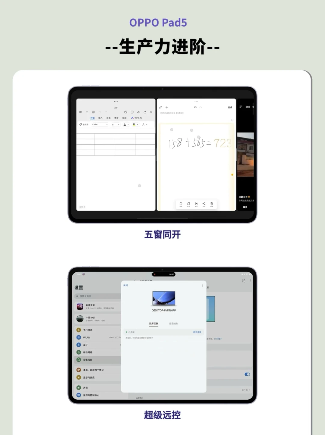 如果你是重度游戏党、追求极致性能,经常泡图书馆、需要护眼柔光屏,考研/论文党需要AI笔记、PC级WPS,预算2500+,想一步到位用4年,那建议选OPPO Pad 5。