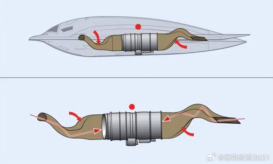 烽火问鼎计划全球武器装备盘点军事ai新视野 关于某隐形战略轰炸机是现代化放大B2说法的由来关于B21的尺寸与弹舱➡️网页链接➡️大约十几年前图1网站就挂了图2的并列双发大S管进气道线图,只要不是井底之蛙,就能认出这是B2进气道的造型。参考图3和图4,后来一些论文多次强调曲柄风筝构型翼展能做更大、大航程和操控效率高的优势。因此得出第一版水分子方案就是个拉长机头现代化B2的结论。➡️图4指出新专利指向水分子回炉再造改了方案,看描述类似B21进气道。图6和图7为模拟的B2与B21进气道S弯不同,B21的进气道进口高度没B2那么斜(B2仍有概率在某些角度被探测到风扇图9)、但是B21有个U型弯彻底杜绝了前半球被看到风扇的可能、尾喷管B21也采用了大S喷管,0可能被后半球的敌机雷达探测到燃烧室、红外特征远低于后向弯曲更小的的B2,综合隐形效果的确B21第一。如果水分子按照B21方案大改成类似设计无疑大幅提高了隐形效果。⭐️有人鼓吹B21无隔道进气道,其实GJ11就是无隔道进气道,B21虽然比B2的有隔道进气道进步,但是图7、图8显示B21进气道的防尘罩是竖立折痕、说明B21的异型进气道截面比较特殊,图18证明B21是无隔道无隔板进气道。➡️图10~图12为B2与B21同角度对比。⭐️航程最大优化就是飞机全程保持亚音速巡航,水分子选择亚音速是大势所趋,滞空时间是轰炸机高优先级指标。如果真如图4所言按B21标准重新设计,这将是一个B21的大哥的类型。从而有力驳斥了网上对隐形战术意义的质疑。小米➕步枪能打败飞机大炮、但不等于飞机大炮不如小米➕步枪(图13为J20隐形总师的结论),从我国新一代装备发展趋势看,从隐形走向更隐形是用脚投票打击反隐形派谬论了,包括这次的大号B21。