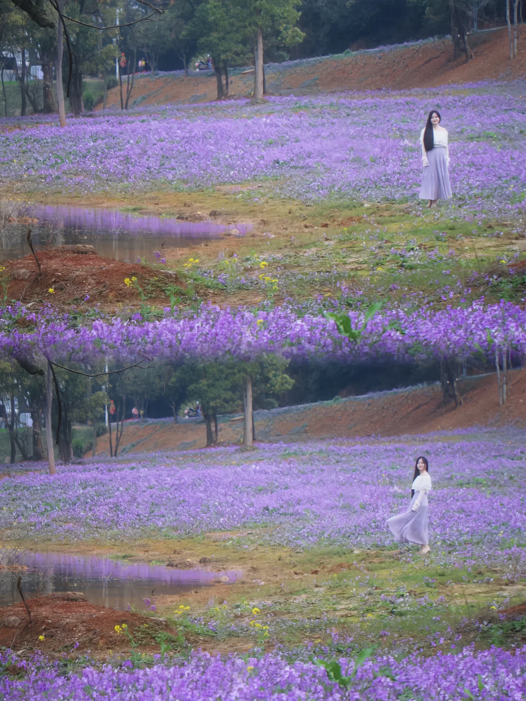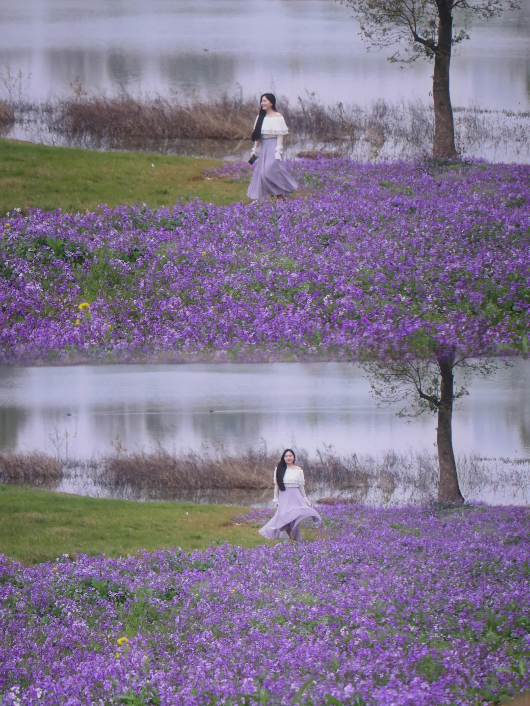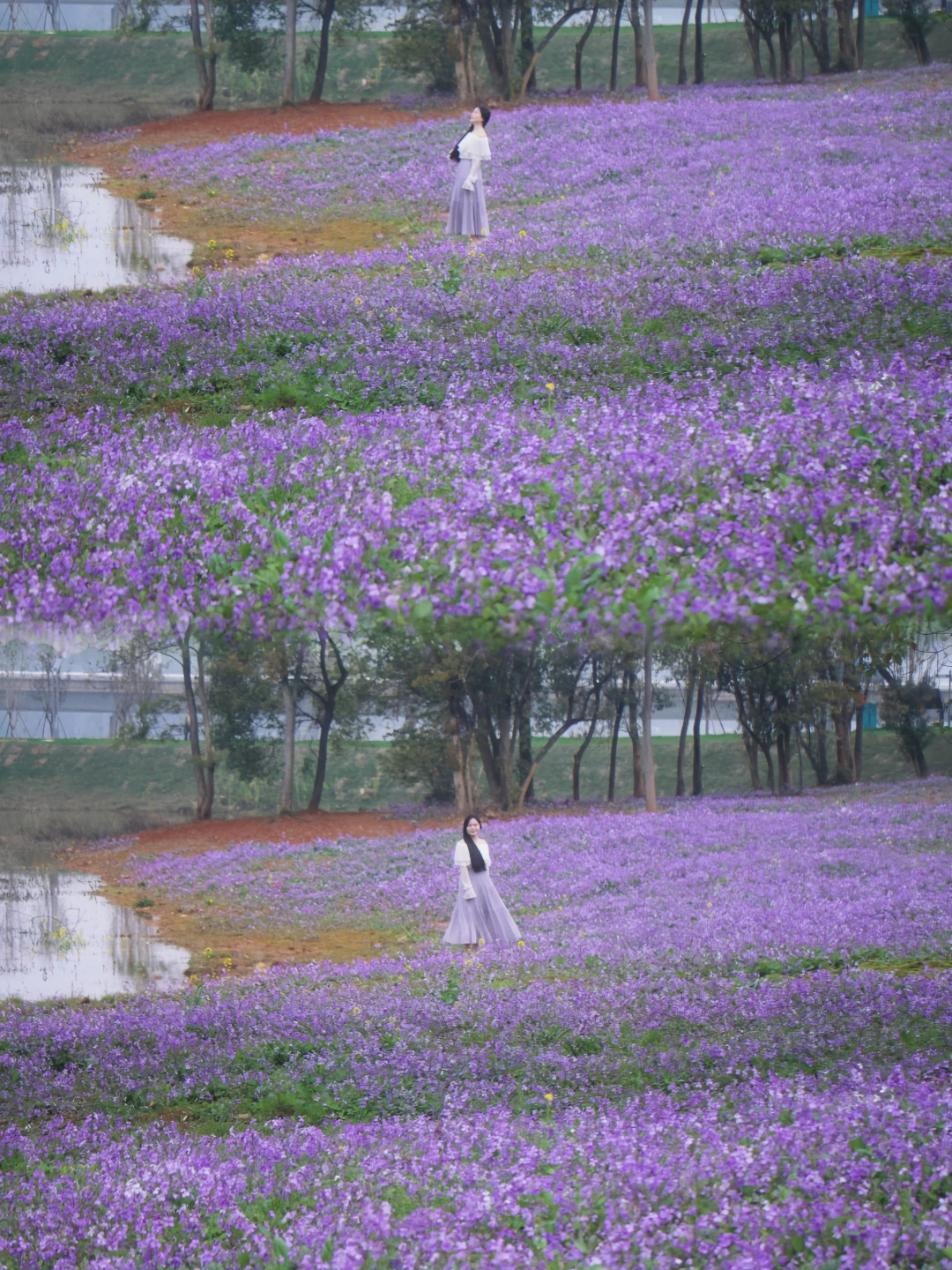 二月兰开,真的很浪漫~ “春寒未尽吐幽芳,林下溪边泛紫光” 🔮蓝紫色的花海就在鱼目山公园,直接导航红谷滩狮子山,就可以到公园一个免费的停车场,直接向湖边走,一路上就有二月兰,非常美,湖边的大片二月兰要过堤到河对岸。 ⚠️提醒一下,不要踩花哟,河边允许拍照,可以绕花田过去。