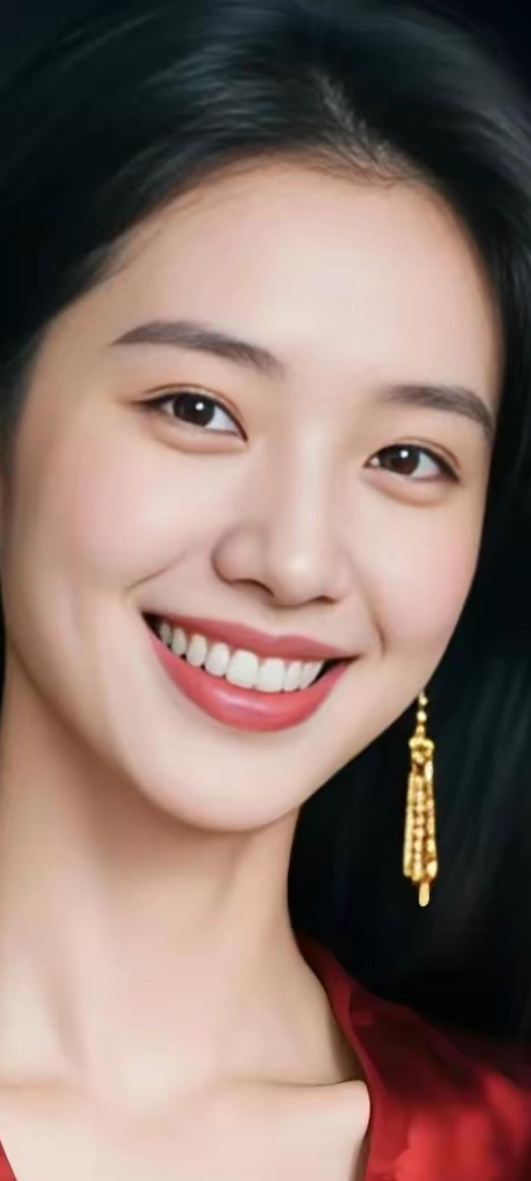 甜美笑容,金饰闪耀,红衣飘逸,女神范儿十足!🌟✨