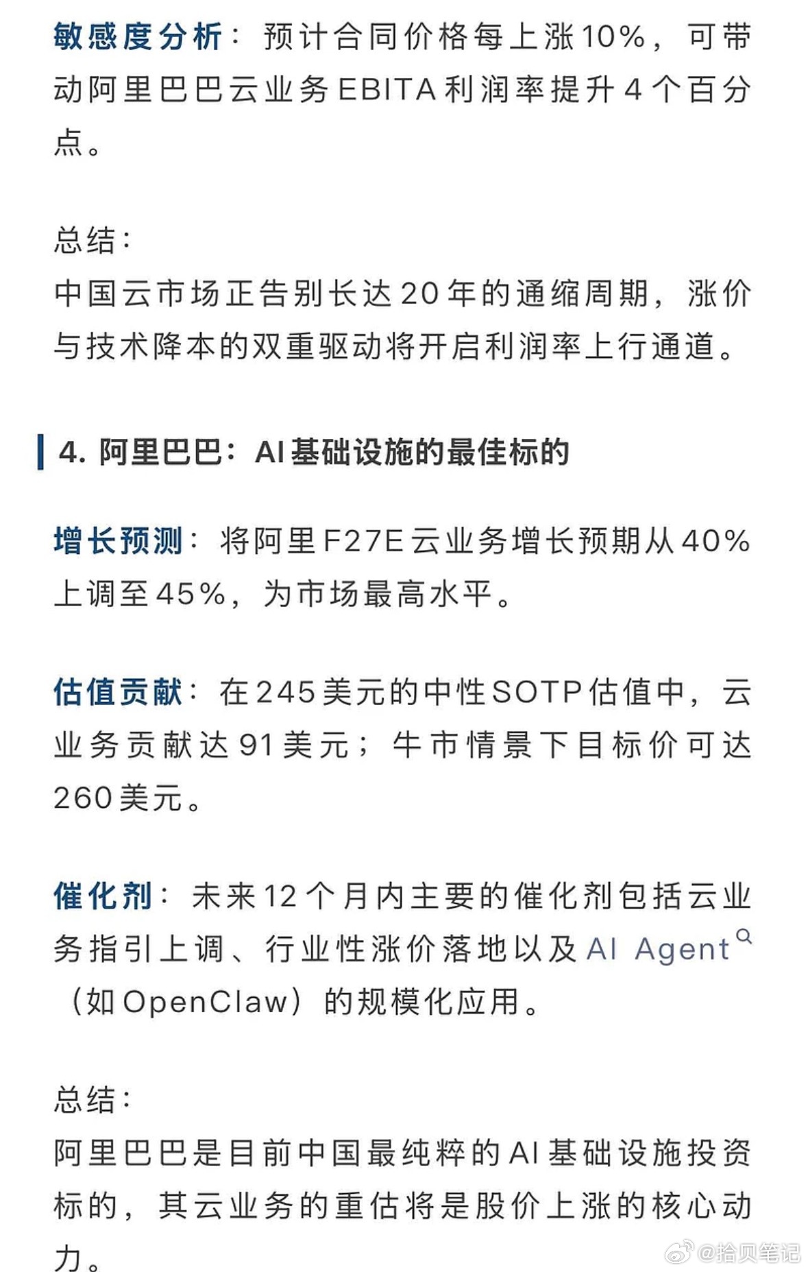 大摩这个分析师是真聪明人,抓住了阿里投资的要害,那就是AI+云计算业务的狂飙突进才刚刚开始。2026年大摩认为阿里这一块业务的增速会达到45%。
