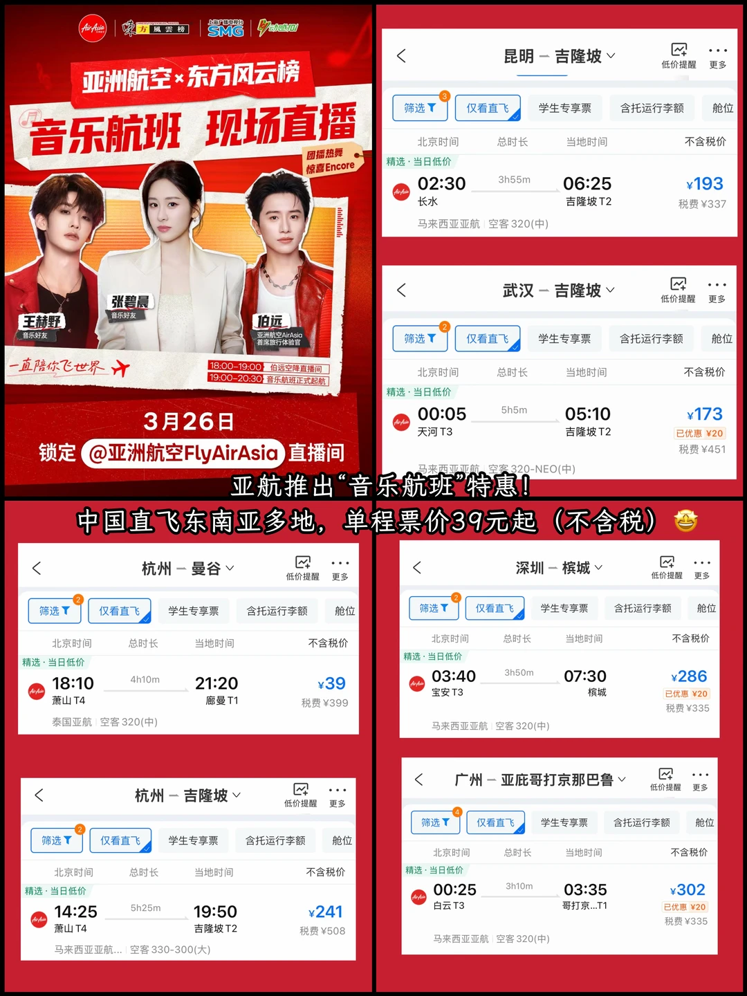 3月26日亚航还将在成都举办音乐节🎵伯远、张碧晨、王赫野都会到场,爱豆们有福啦😍